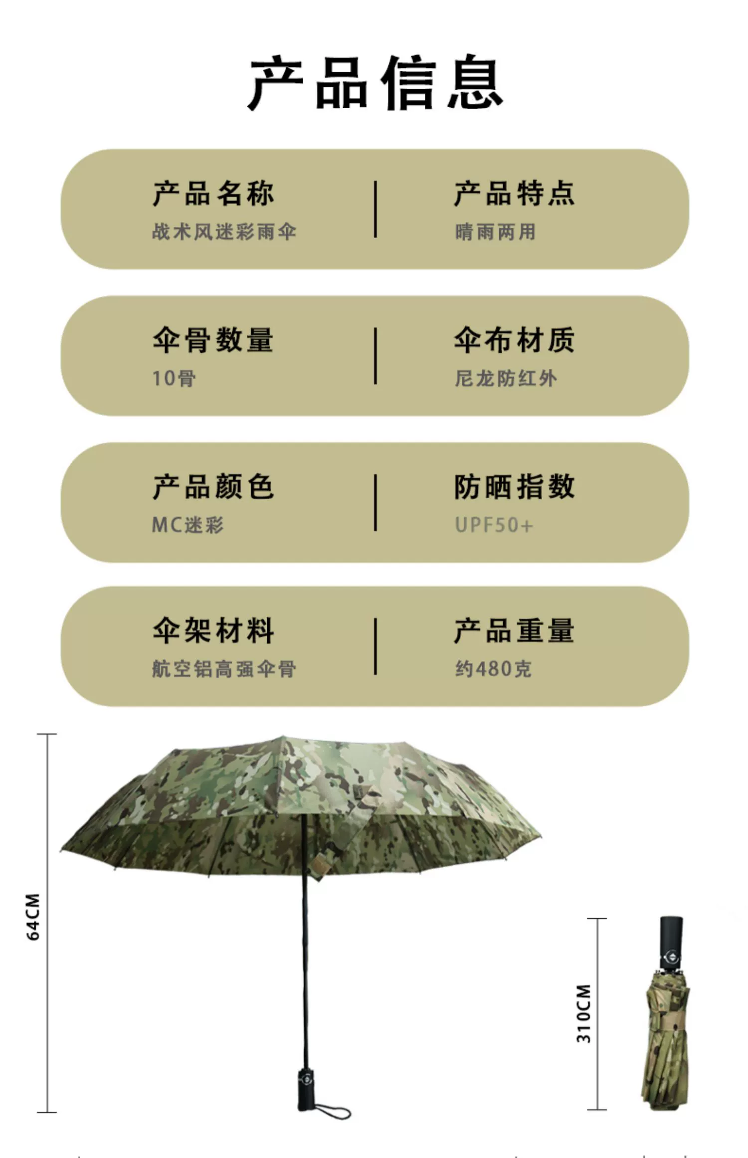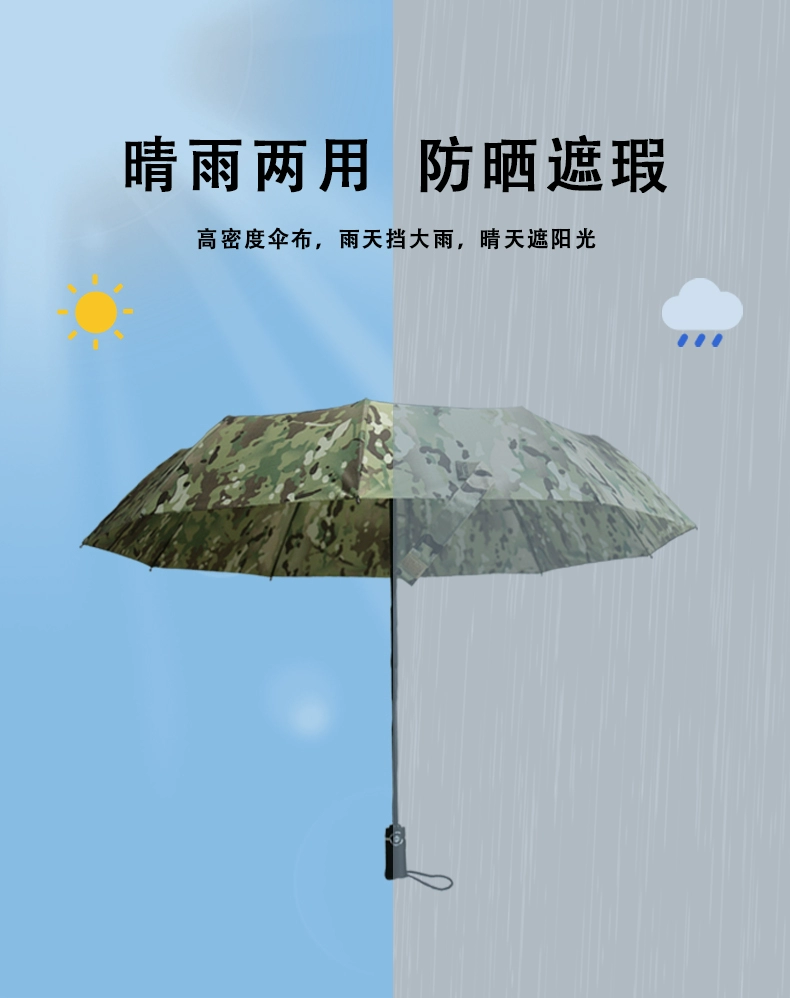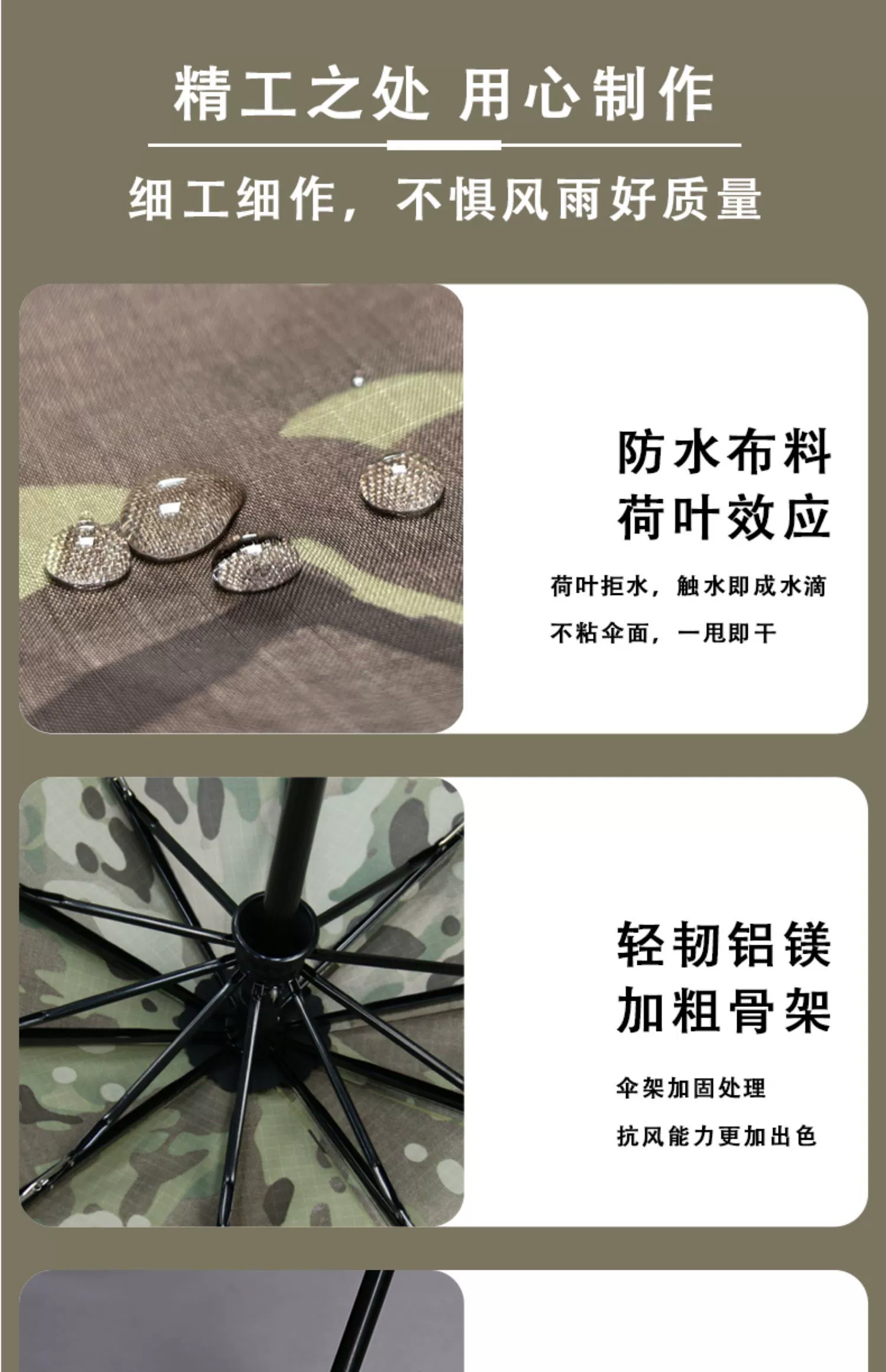 Paraguas plegable reforzado completamente automático del camuflaje IRR del estilo táctico al aire libre