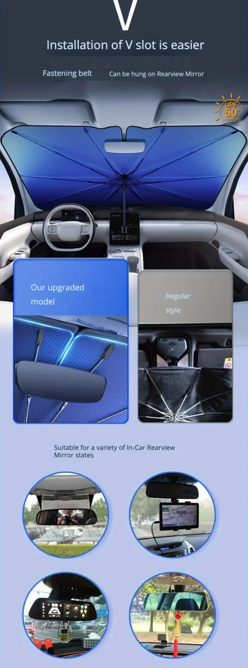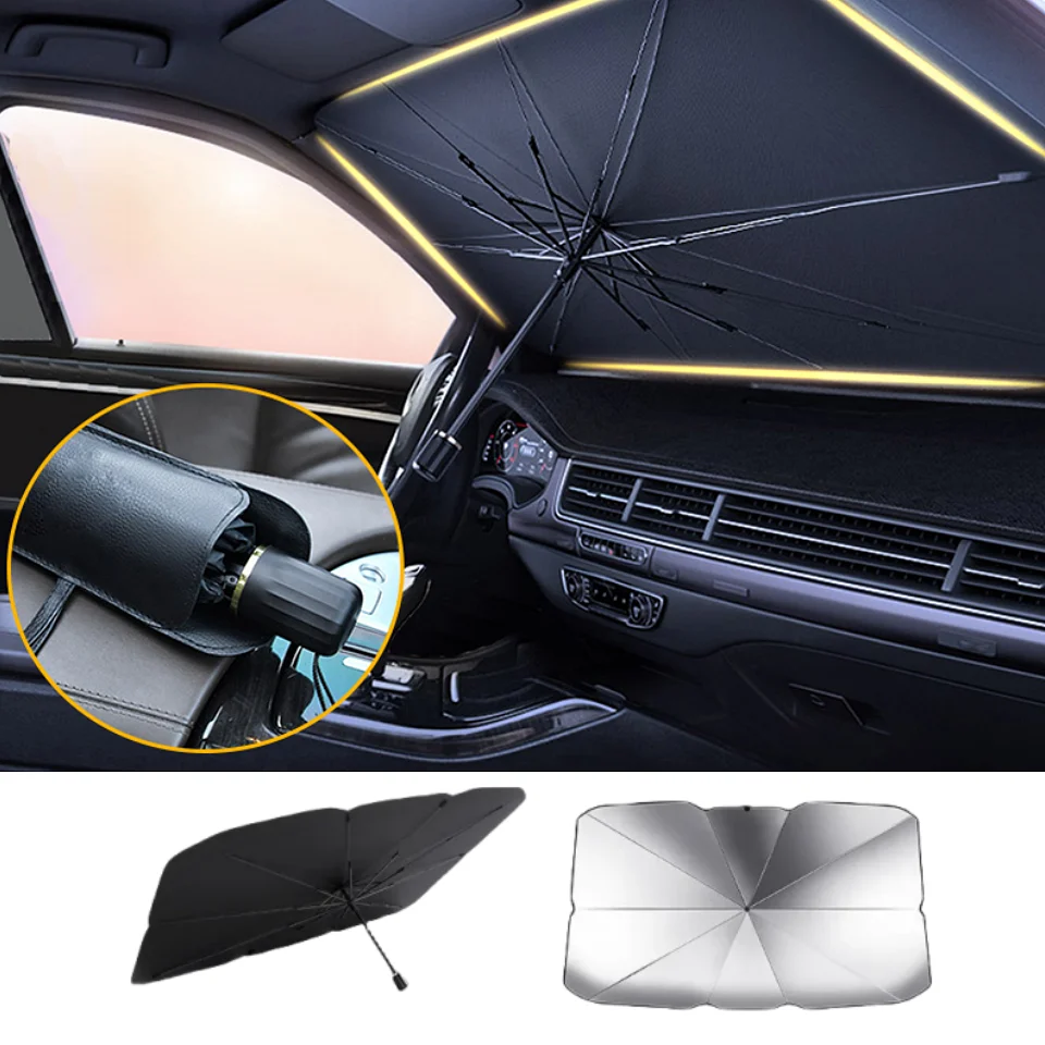 1.Material: Esta sombrilla para coche está aislada al calor, es resistente a los rayos UV, de uso fiable y tiene una larga vida útil.
