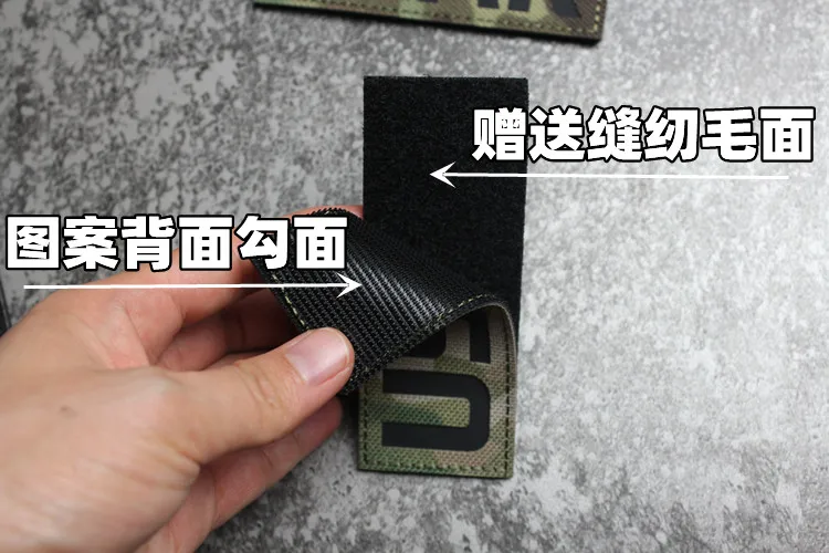Nota: La placa base blanca es un material absorbente de luz y tiene un efecto fluorescente verde después de la iluminación. La tela de base de nylon, la Insignia grabada con láser y la luz directa tienen un efecto reflectante.