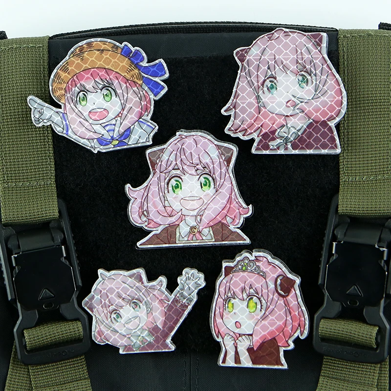 Parche acrílico reflectante nocturno, familia espía, casa de juego, Ania, insignia táctica de expresión bonita, brazalete periférico de animé