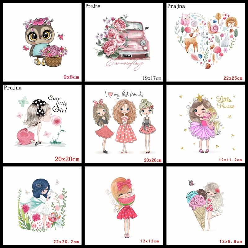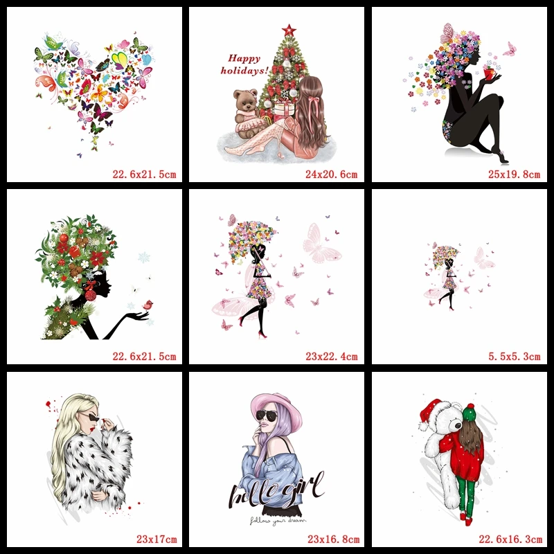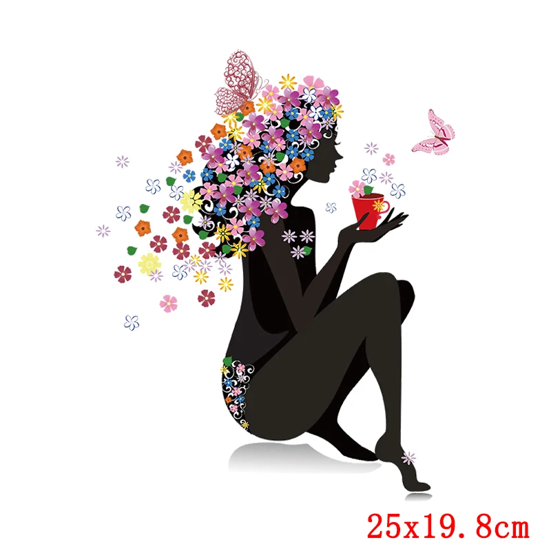Parche adhesivo térmico de chica a la moda, transferencias de hierro de mariposa colorida para ropa, apliques de dibujos animados, parches de transferencia de calor DIY