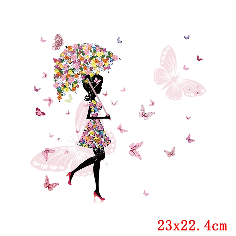 Parche adhesivo térmico de chica de moda mariposa colorida transferencias de hierro para ropa apliques de dibujos animados parches de transferencia de calor DIY MOQ:1 Tamaño: como se muestra en la imagen