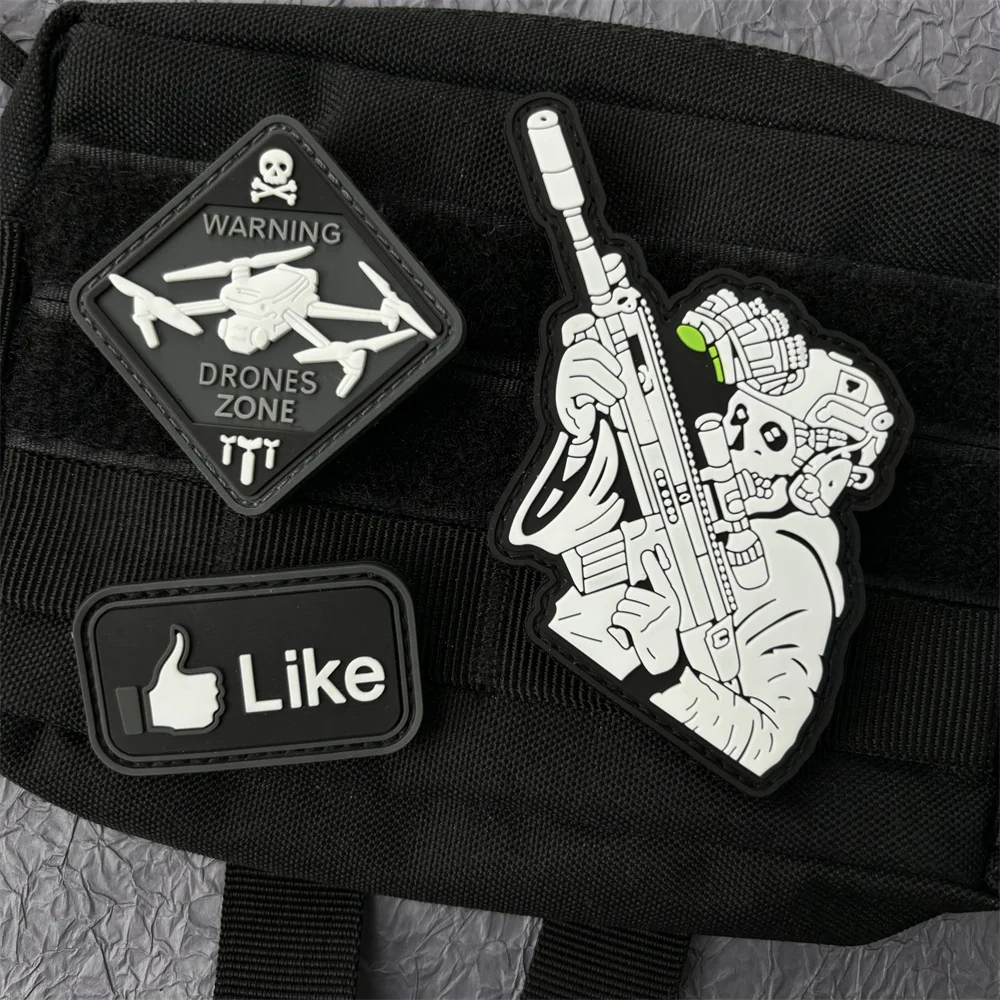 Parche de advertencia UAV, pegatinas de PVC para ropa, insignias de moral "Me gusta", parches tácticos militares, mochila, gancho y bucle Wappen