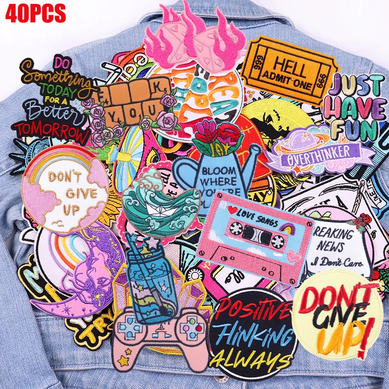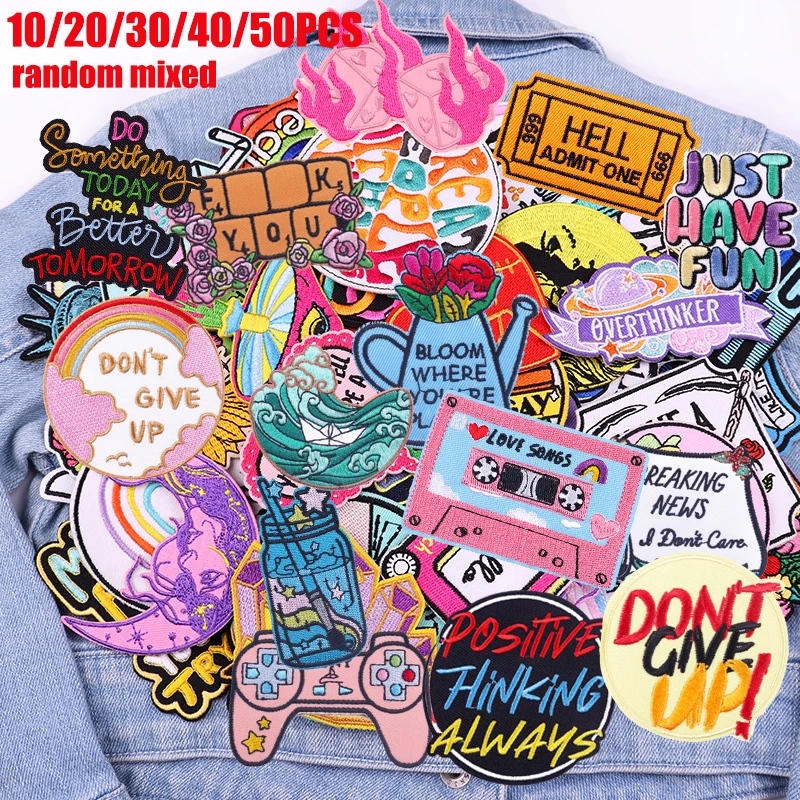 Parche aleatorio con eslogan de letras en idioma positivo, parche bordado con cinta de letras de dibujos animados, parches para planchar DIY, 10/20/30/40/50 Uds.