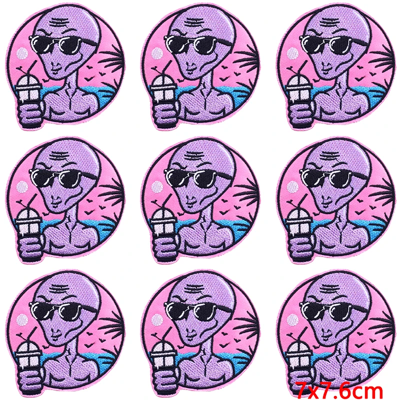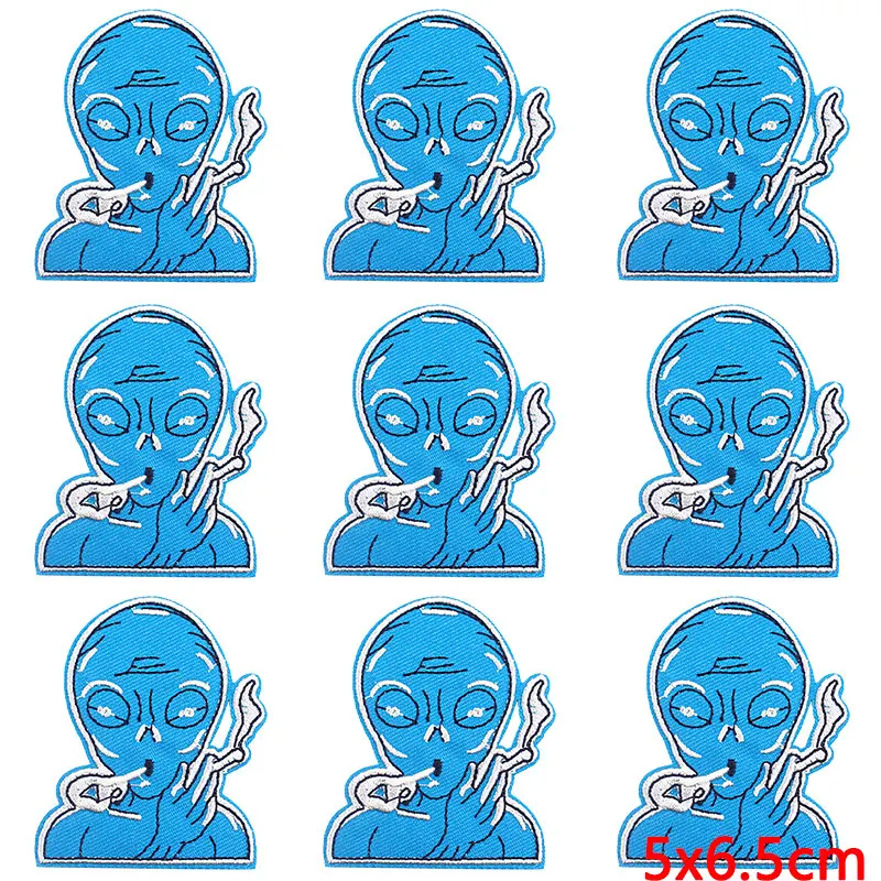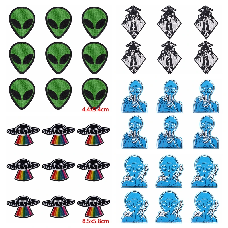 10 unids/lote parche de Alien para planchar parches para ropa parches termoadhesivos en ropa rayas DIY UFO parche bordado insignias