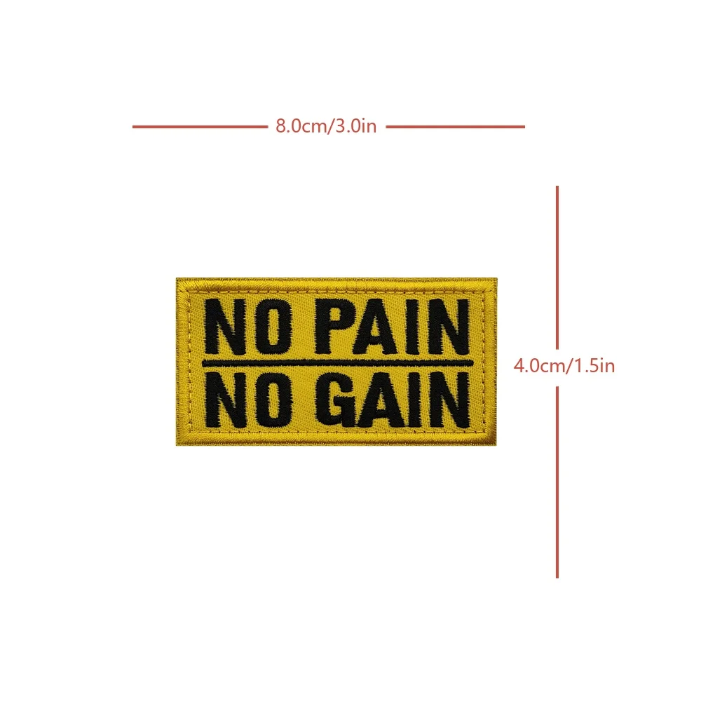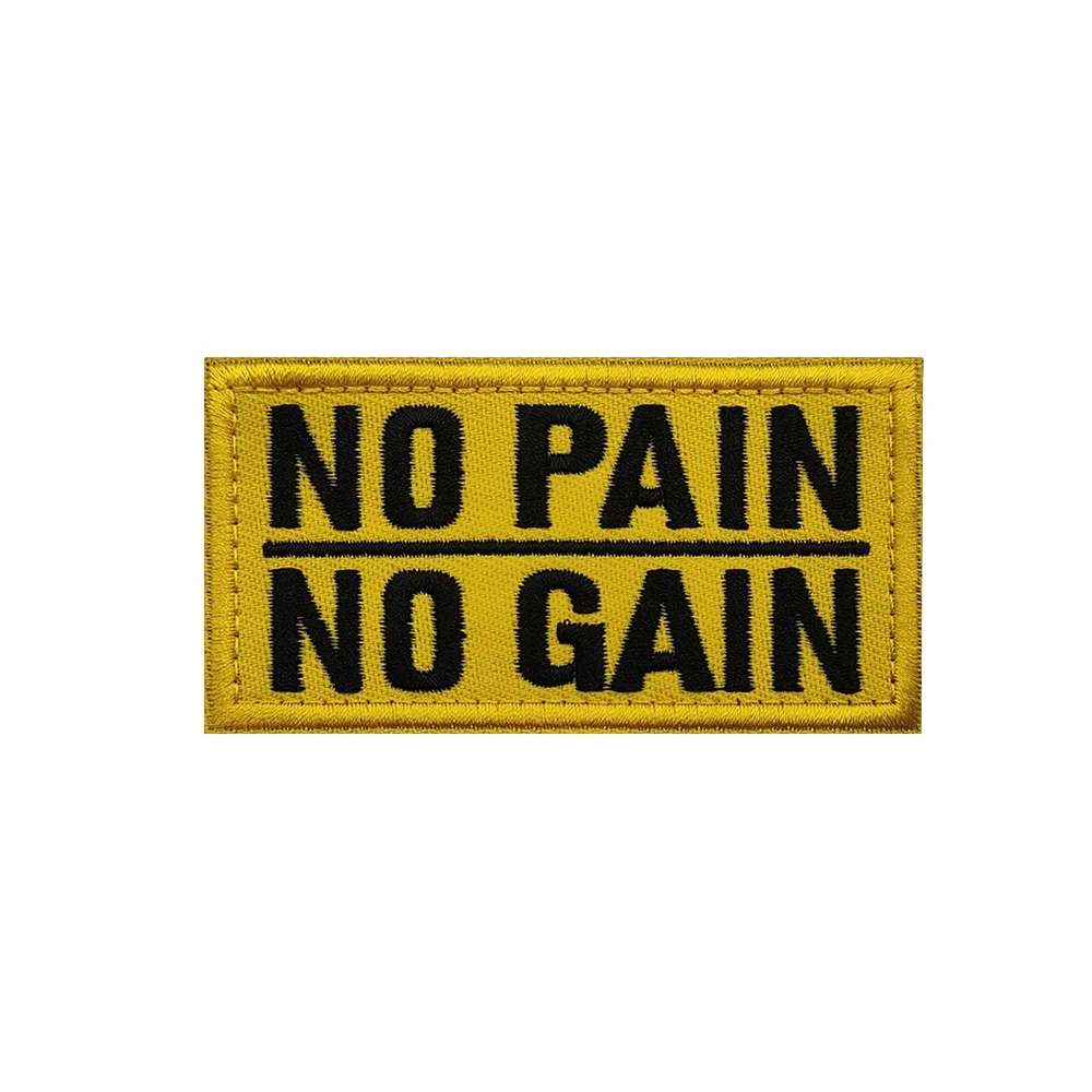 Parche amarillo sin dolor sin ganancia Velcros Morale Meme, insignia de sujeción con gancho táctico divertido, bordado para gorra, pantalones vaqueros, mochila Molle