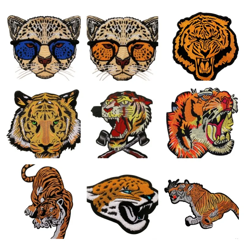 Parche de animales Tigre cabeza de guepardo bordado pegatinas de tela dorada para abrigos reparación agujeros dañados accesorios de ropa Decoración