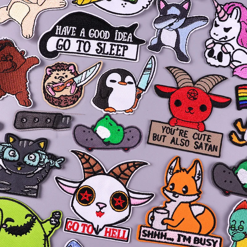 Parche de Animal de dibujos animados, pingüino erizo, parches bordados para ropa, parches termoadhesivos para ropa, pegatina de unicornio y gato DIY