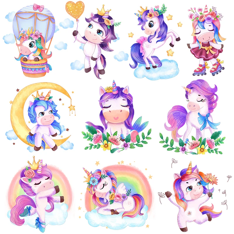 Parche de Animal de dibujos animados, transferencia de hierro para ropa, Transferencia Térmica de unicornio para ropa, pegatina térmica para ropa, pegatinas de decoración