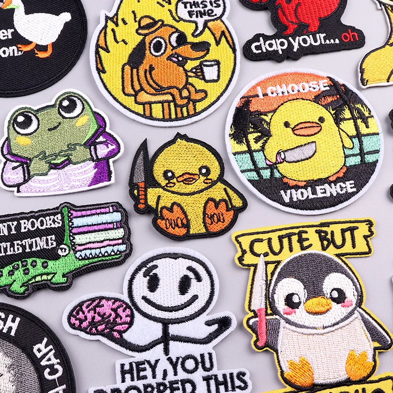 Parche de animales de Hip Hop, parches para planchar en la ropa, parches bordados de pato amarillo pequeño para ropa, insignias de rayas, pegatinas de decoración