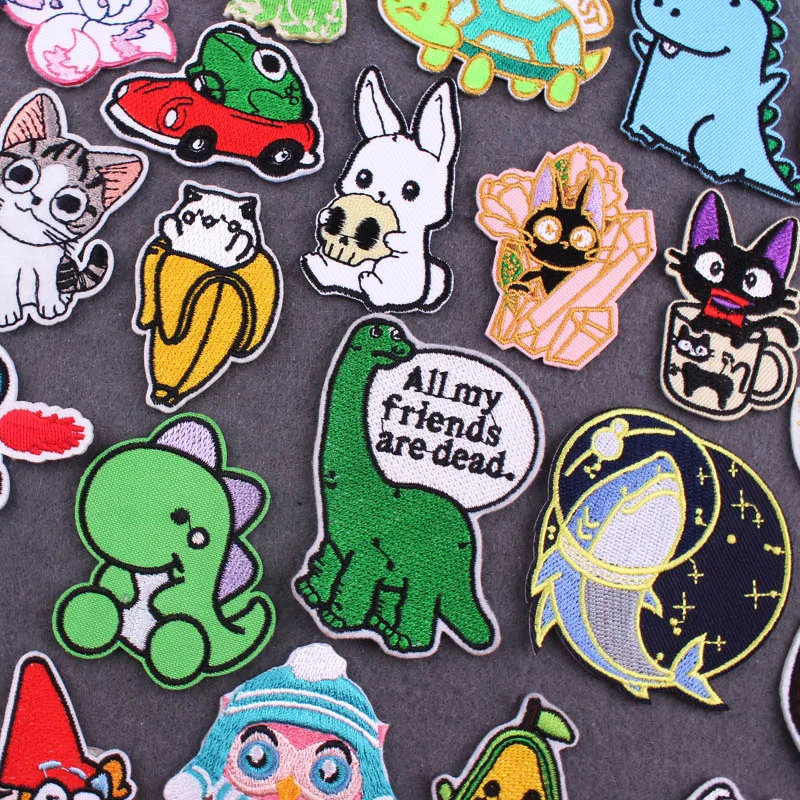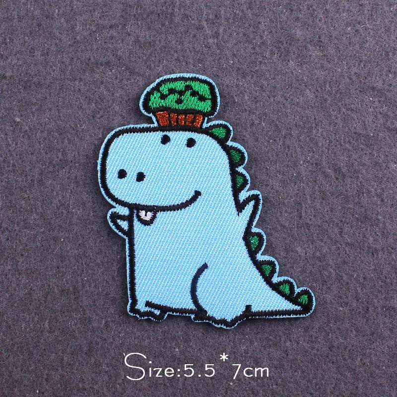 Parche de animales bonitos para ropa, Parche de dinosaurio gato a rayas, parches bordados de dibujos animados, parches de planchar para ropa, chaqueta Diy