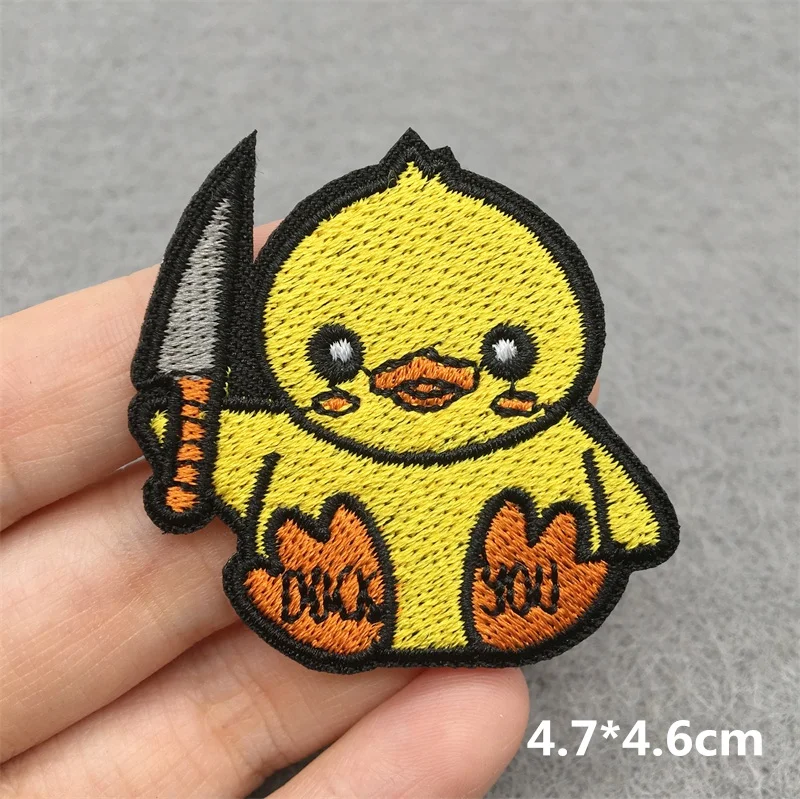Parche de animales de dibujos animados, parches de hierro para ropa, parches bordados de pato y cuchillos para ropa, parche Fusible para insignias de ropa