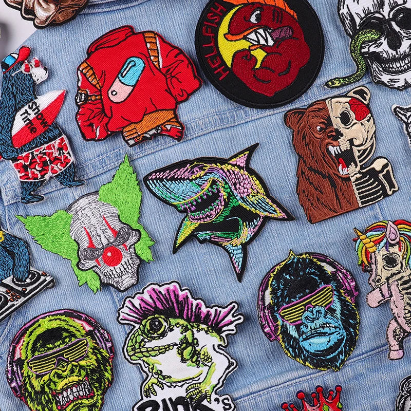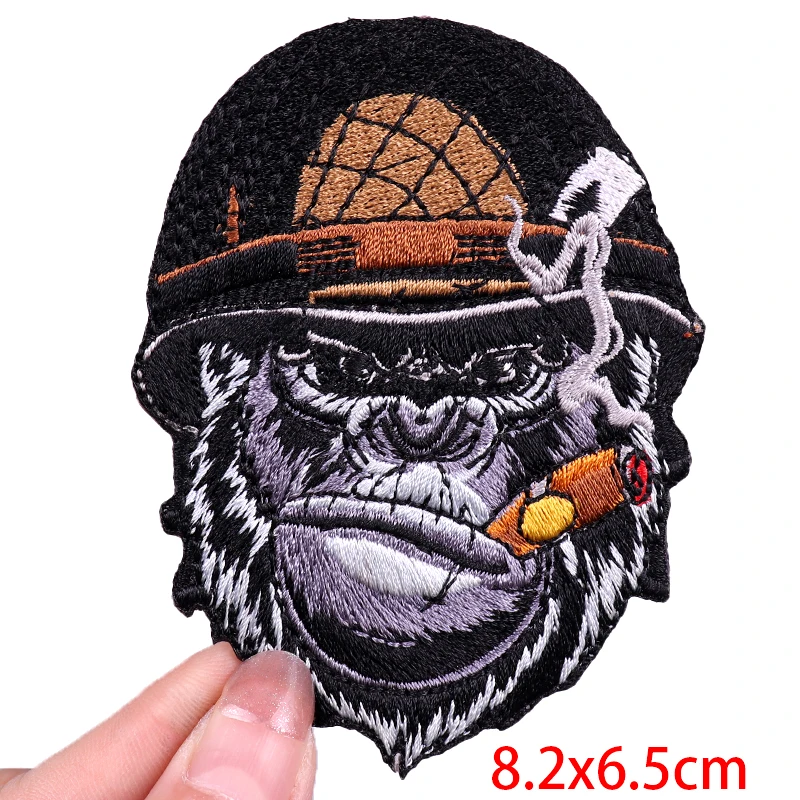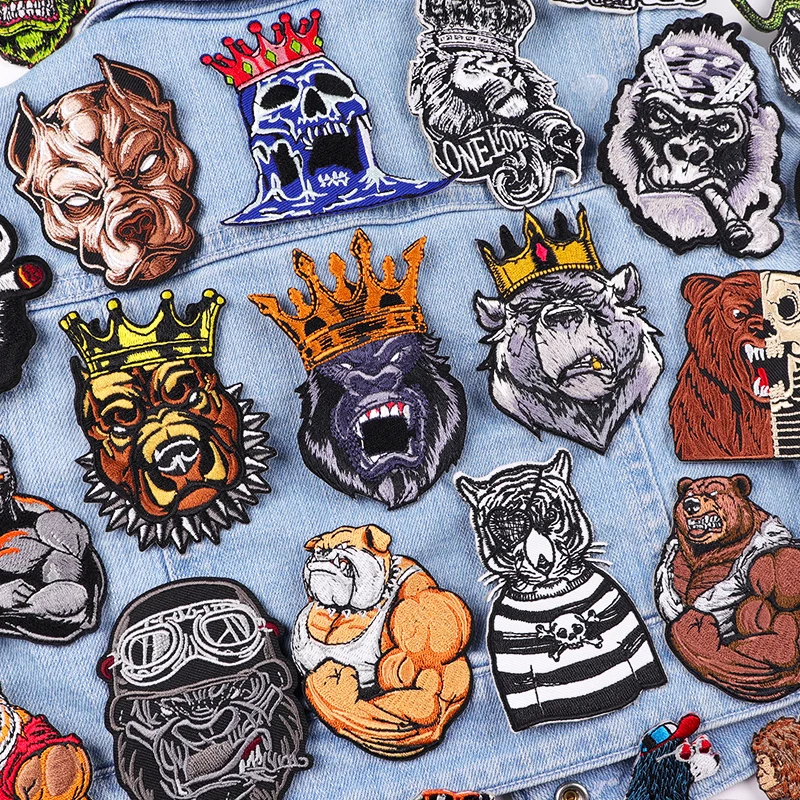 Parche de animales feroz/músculo, parche bordado de oso/mono, parches Punk para planchar para ropa, parches termoadhesivos para ropa