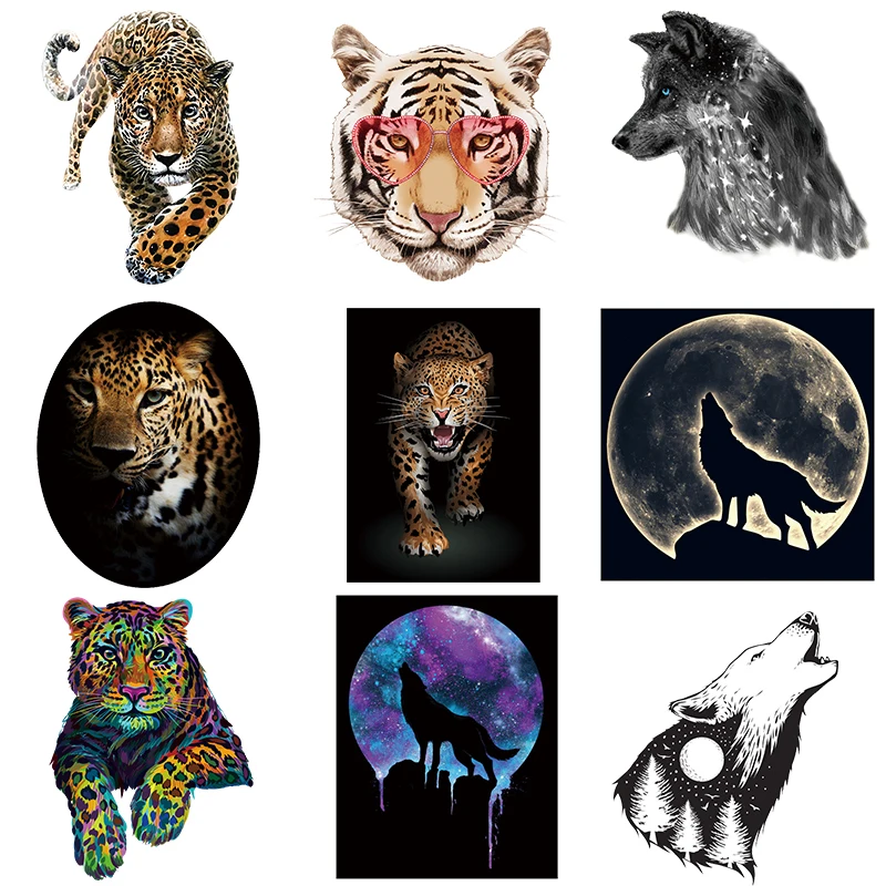Parche de Animal, pegatina térmica para ropa, parches Punk de lobo de leopardo para camiseta, transferencia de planchado para ropa, apliques térmicos DIY