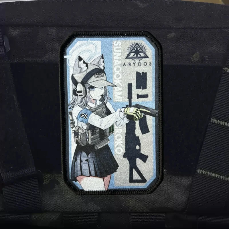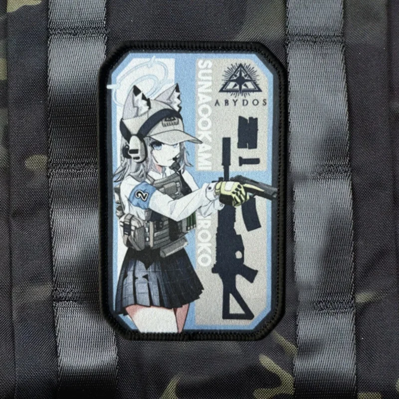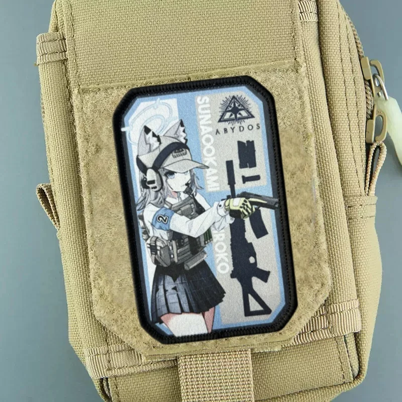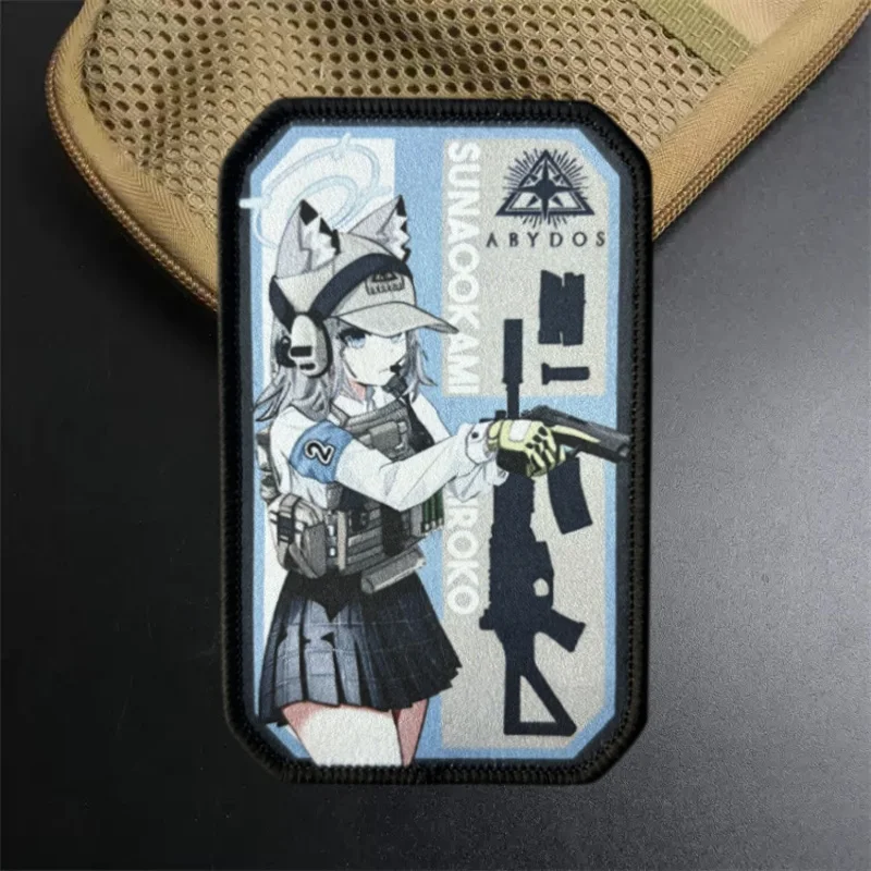 Parche de Anime azul archivo chica con pistola insignia de moral táctica brazalete impreso gancho bucle parches militares ropa mochila pegatina