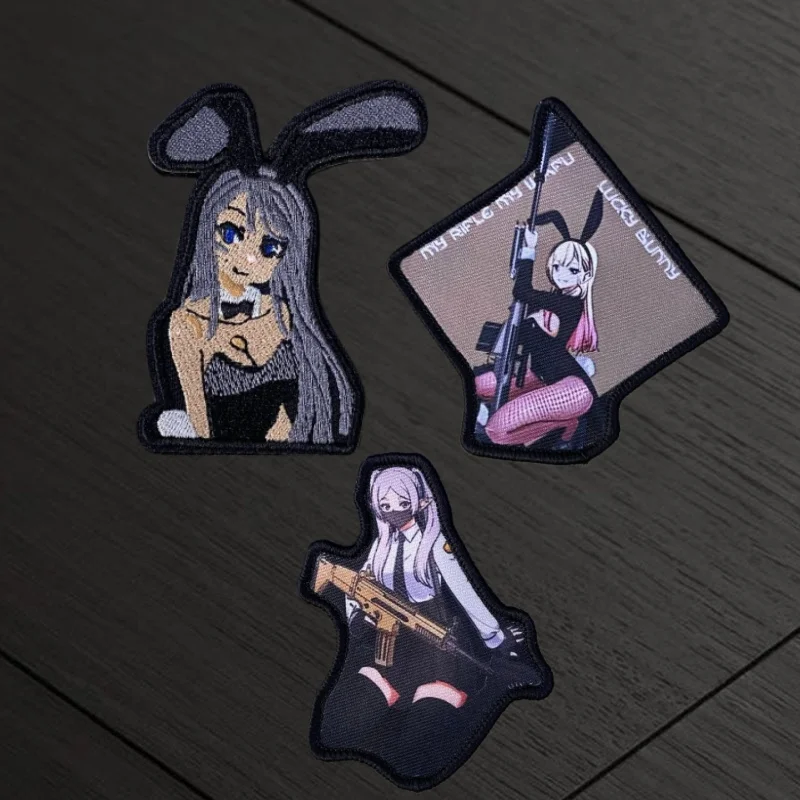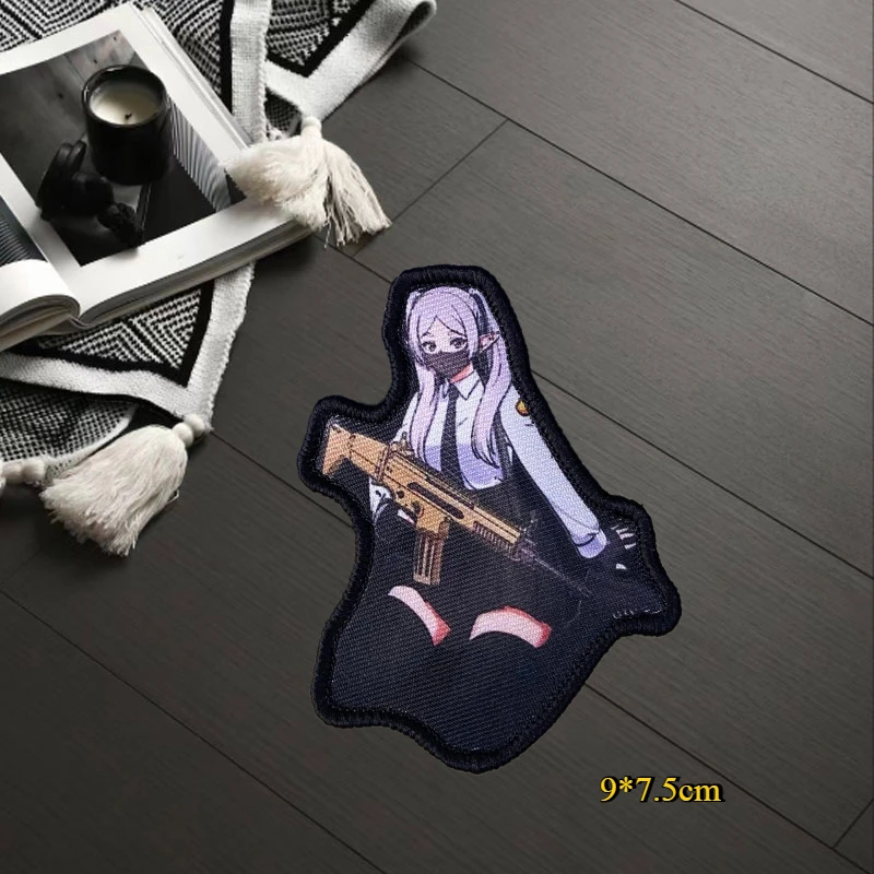 "Anime secundaria chica" parche táctico moral insignia estampado gancho y bucle mochila militar ropa pegatina decorativa brazalete
