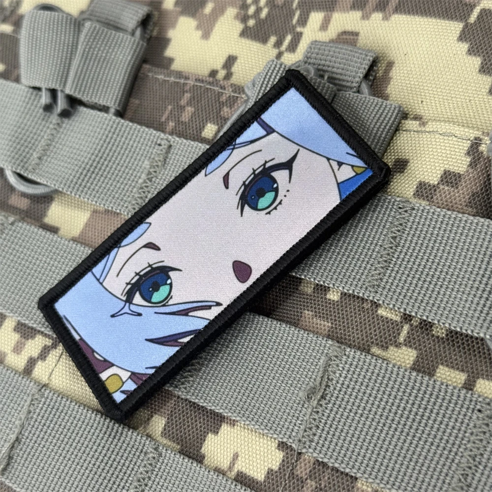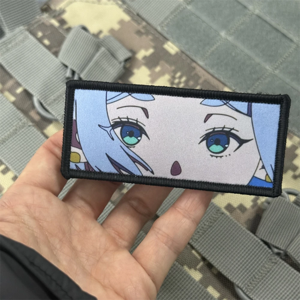 Parche de Anime con estampado de ojos de niña, insignia de moral, brazalete táctico, gancho militar y bucle, pegatinas para mochila al aire libre
