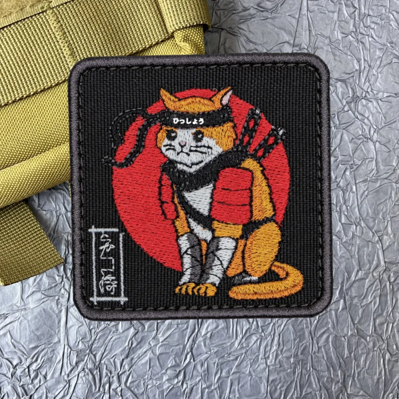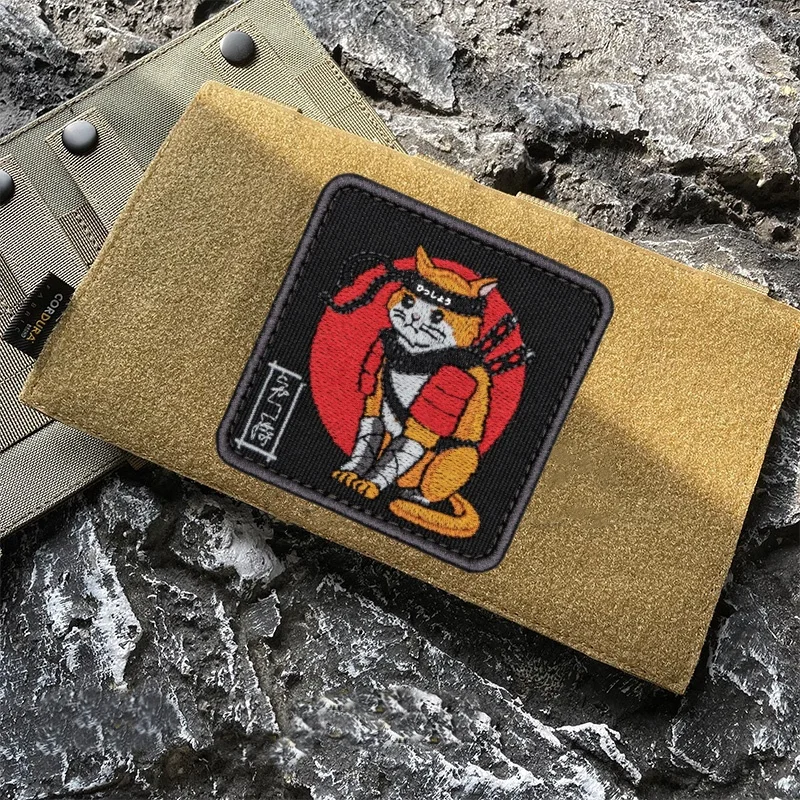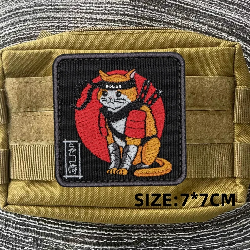 Parche de Anime de gato samurái japonés para ropa, parches de gancho y bucle, mochila, equipo táctico, pegatinas de emblema de dibujos animados