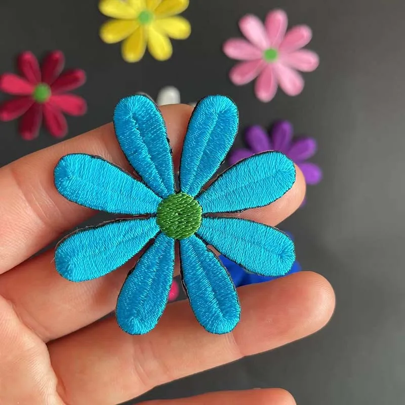 Estas margaritas son perfectas. Excelentemente bordadas, colores muy hermosos, tal como se muestra en el anuncio. Encantado con esta compra. Lo recomiendo 👌👍.