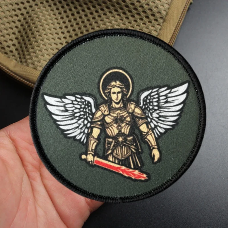 Parche Archangel Michael en ropa, insignia táctica de moral, brazalete estampado, bucle de gancho, parches militares, pegatina para mochila
