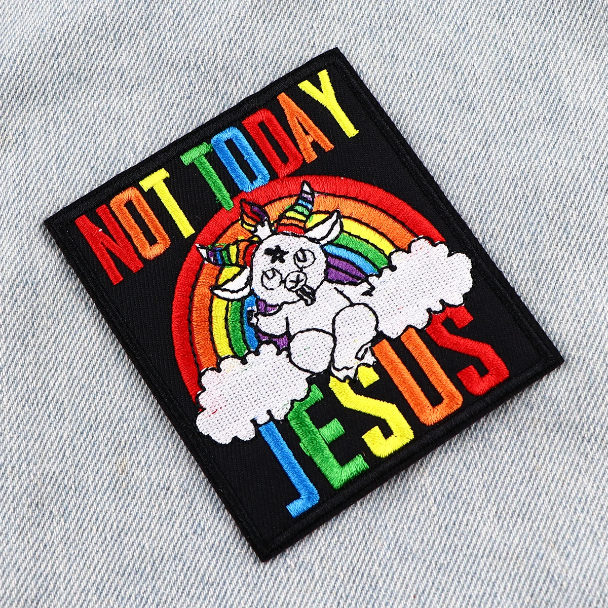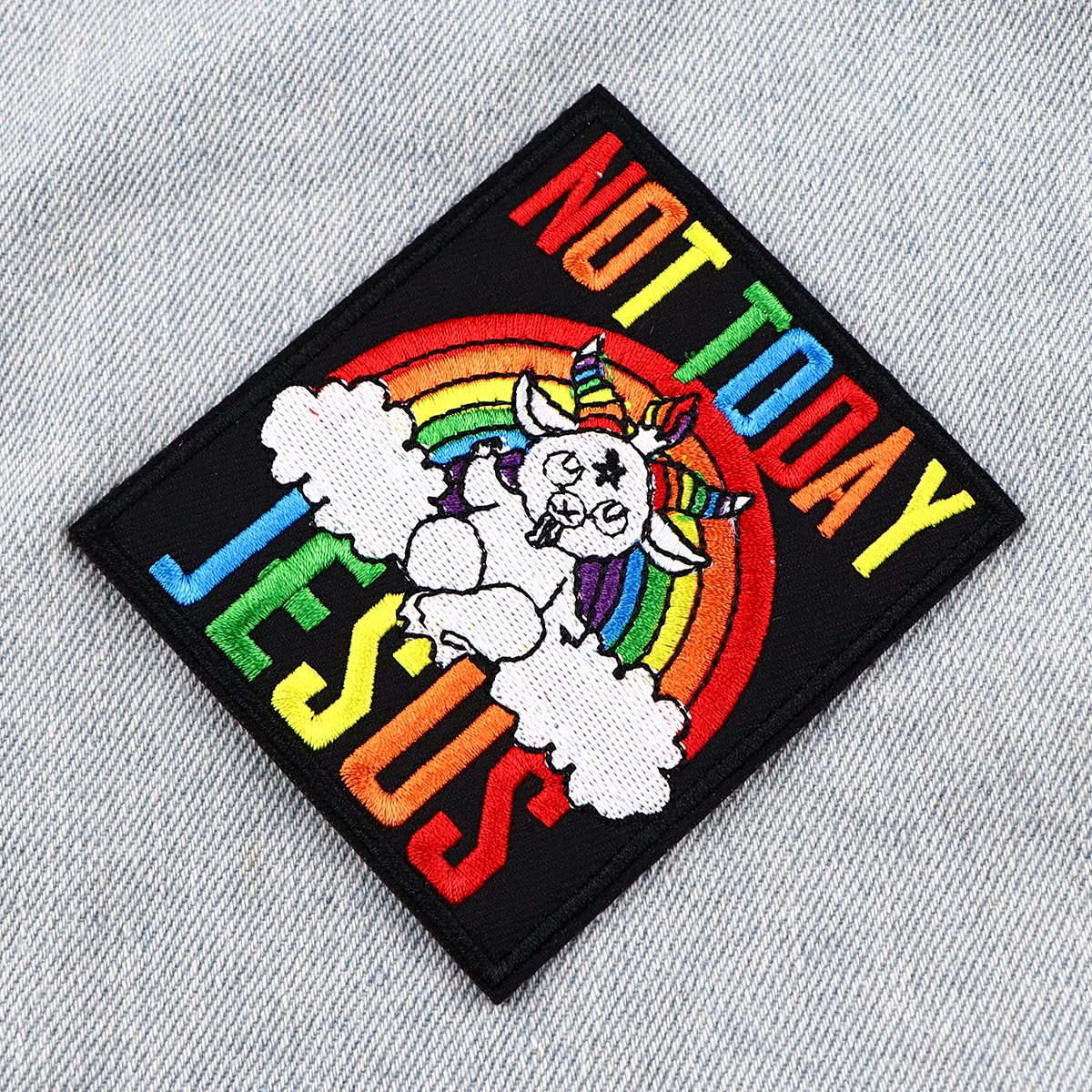 Parche de arcoíris para planchar en la ropa, pegatinas de Jesús, parches bordados en la ropa, rayas de ropa DIY