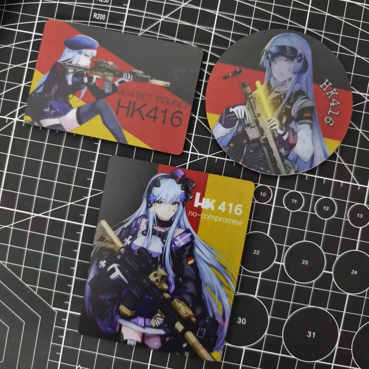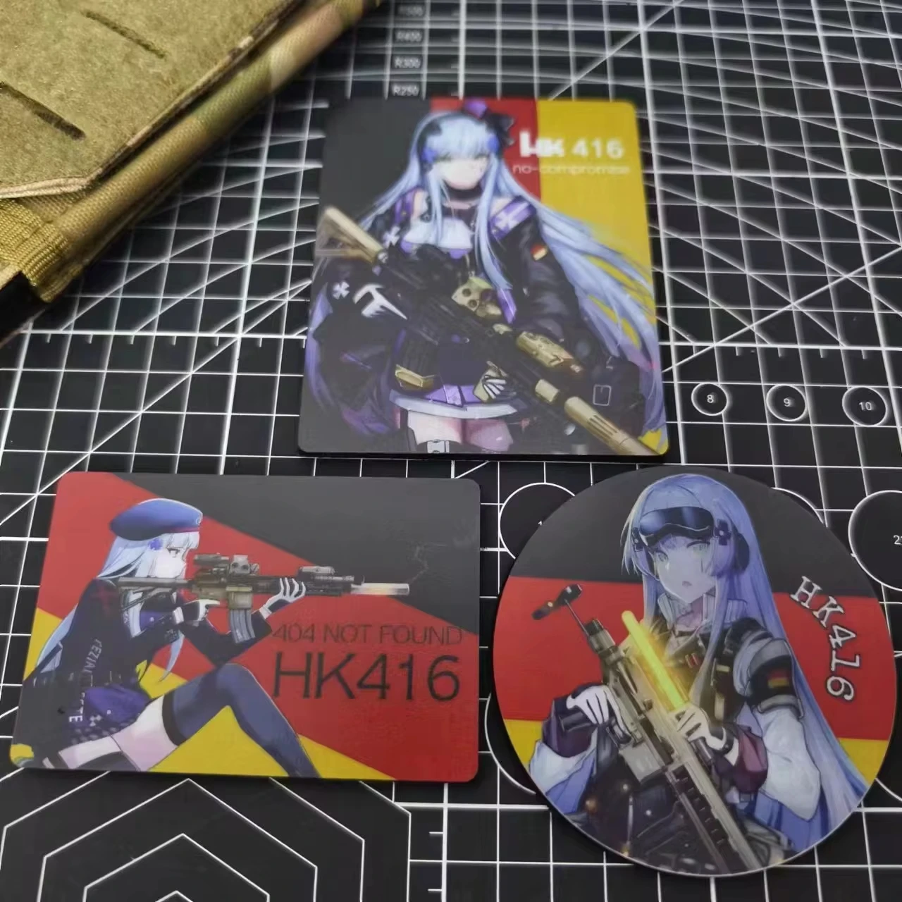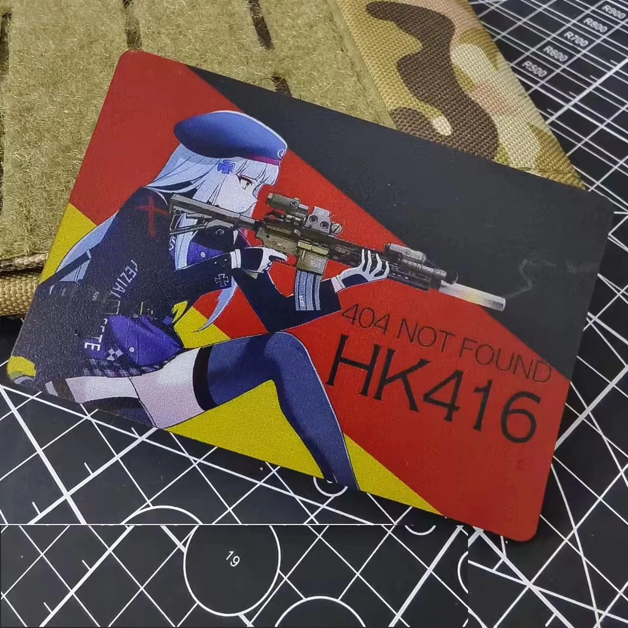 Parche bidimensional HK416 de primera línea para niñas, 404 sin encontrado, pistola táctica con estampado, brazalete de PVC para niñas, mochila para ropa al aire libre