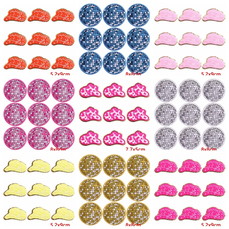 10 unids/lote, venta al por mayor, sombrero, Bola de discoteca, parche para planchar, parches para ropa, parches bordados de dibujos animados para ropa, pegatinas de apliques