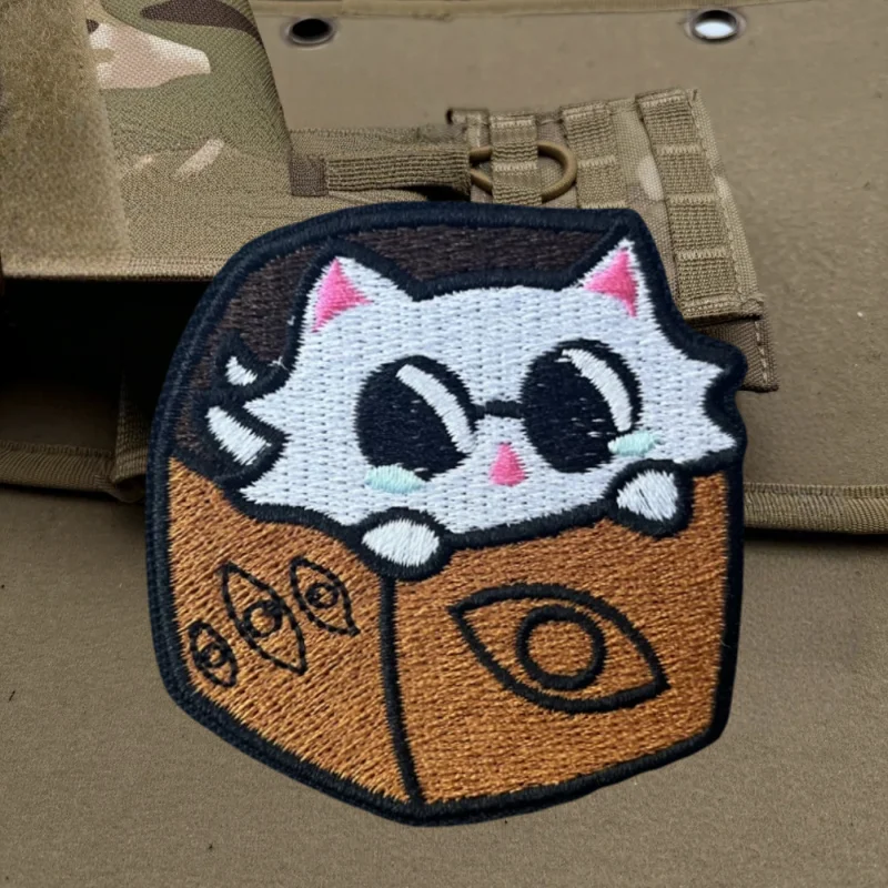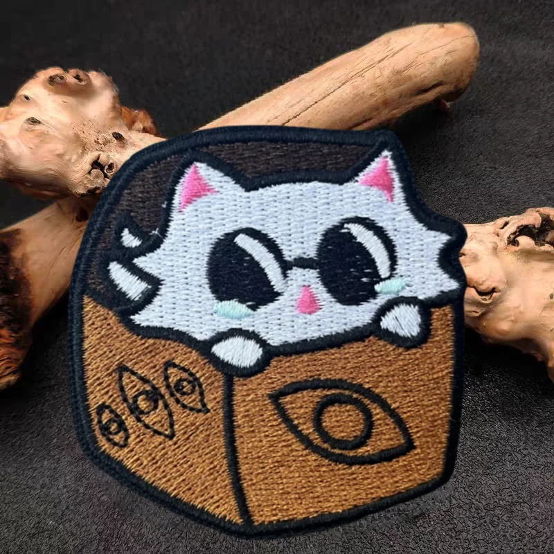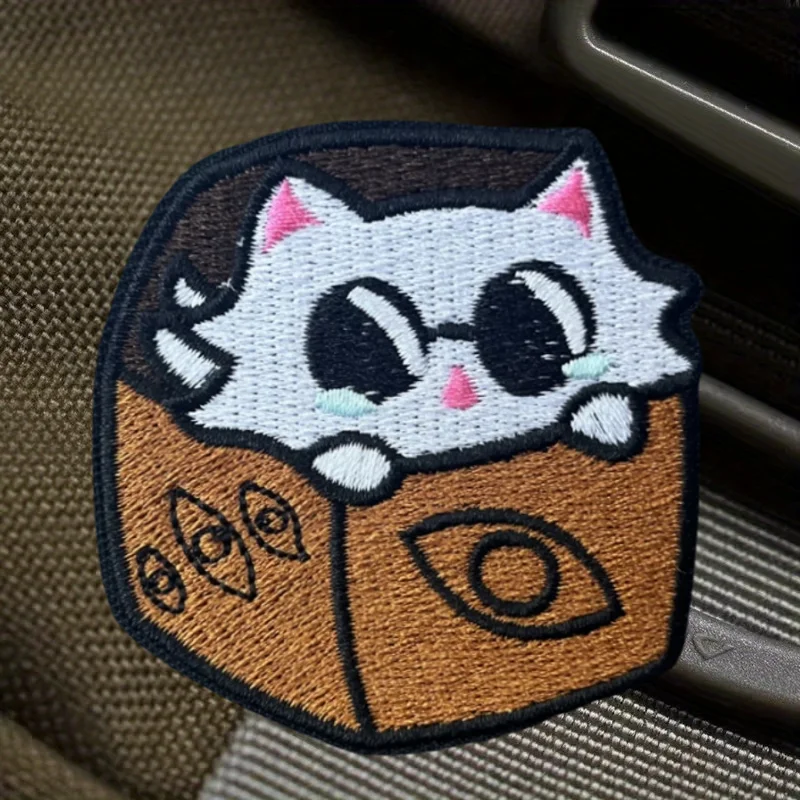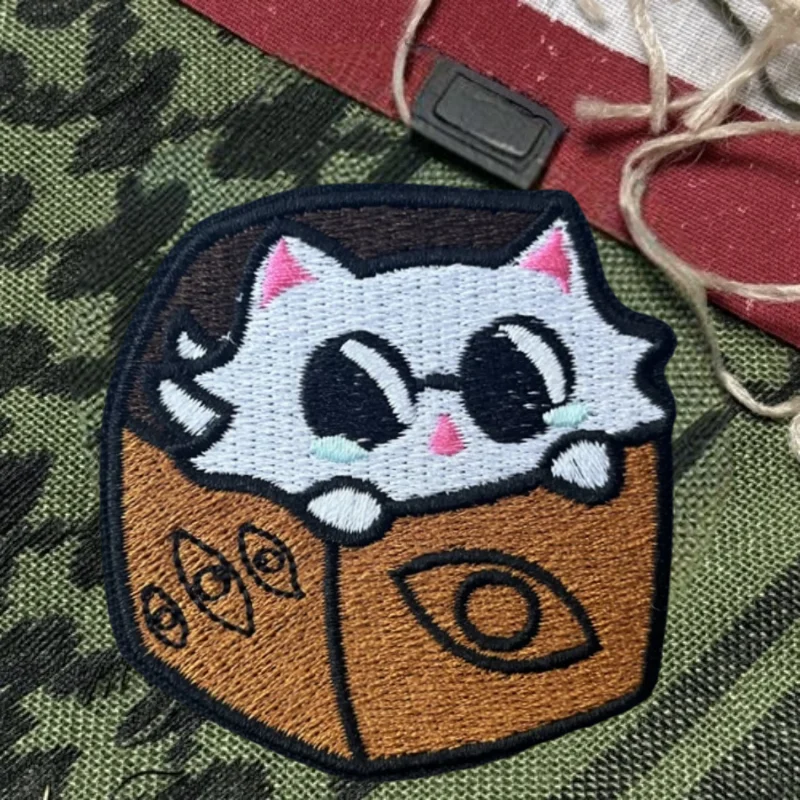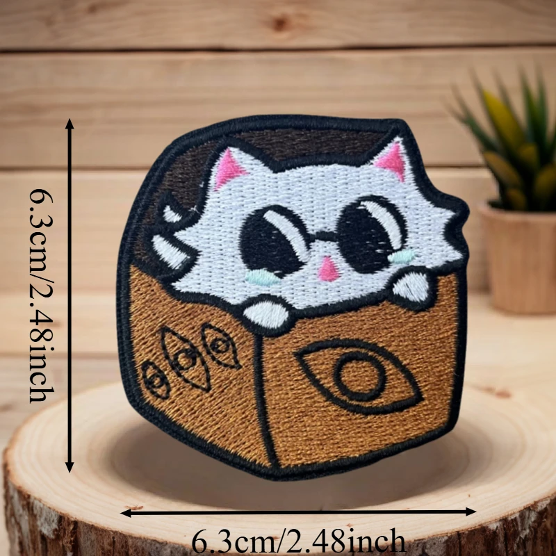 Parche bordado 3D del gato en la caja, insignia de moral de gancho y bucle táctico, pegatinas decorativas para mochila, parches para brazalete para ropaNOTA:1.Diferentes computadoras muestran los colores de manera diferente, el color real del artículo puede variar ligeramente del de las imágenes.