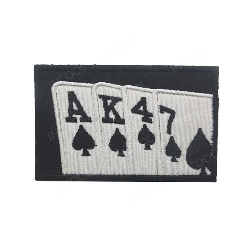 [Especificación]:Parche bordado 3D Parches de naipes Emblema de póquer Apliques bordados Envío de la gota