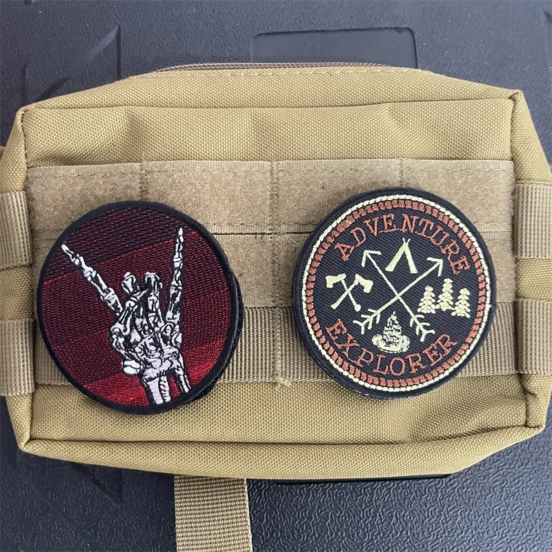 Parche bordado a mano de esqueleto, gancho y bucle, brazalete de Tai Chi, aventura, explorar mochila al aire libre, decoración