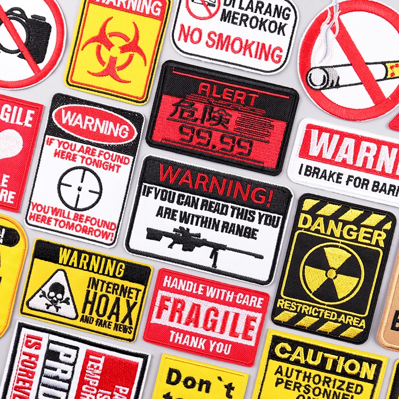Parche bordado de advertencia, parches para planchar para ropa, peligro, señal de prohibición, parches bordados para ropa, insignias de marcador nuclear