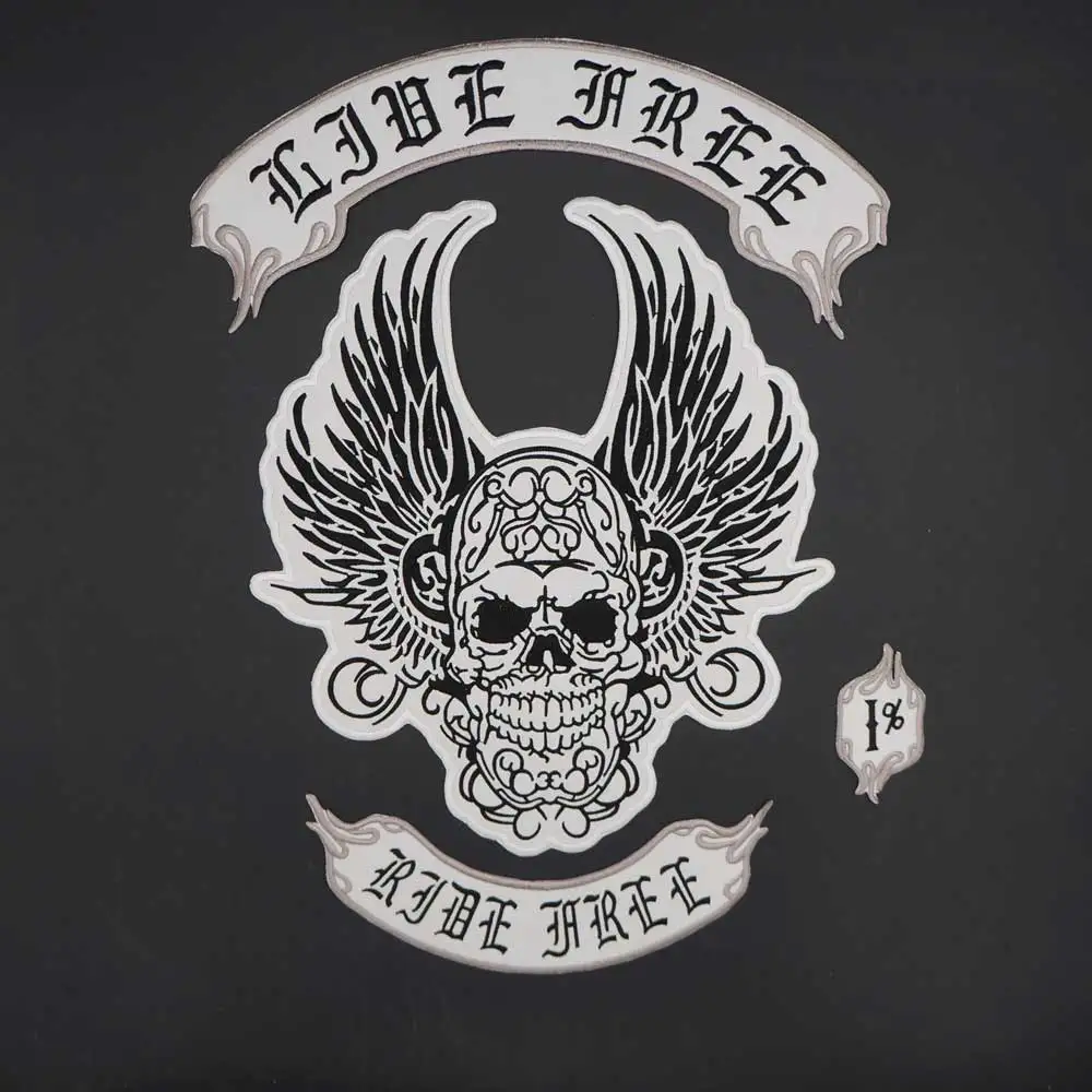 Parche bordado de ala de calavera para motorista y motocicleta, insignia de tela, chaqueta de cuero, decoración trasera de alto grado, planchado, 1%