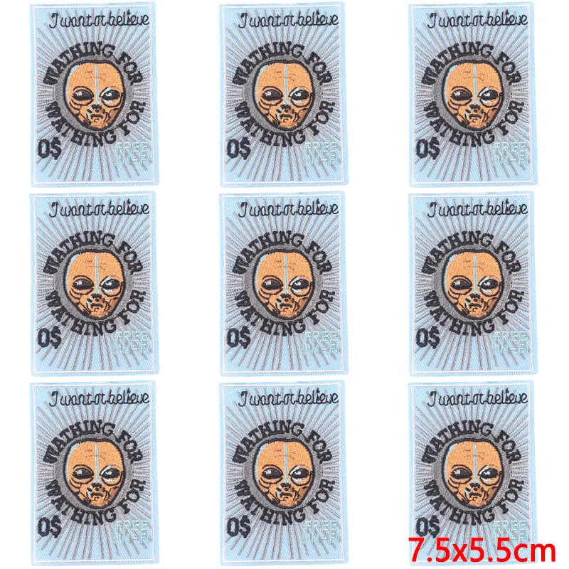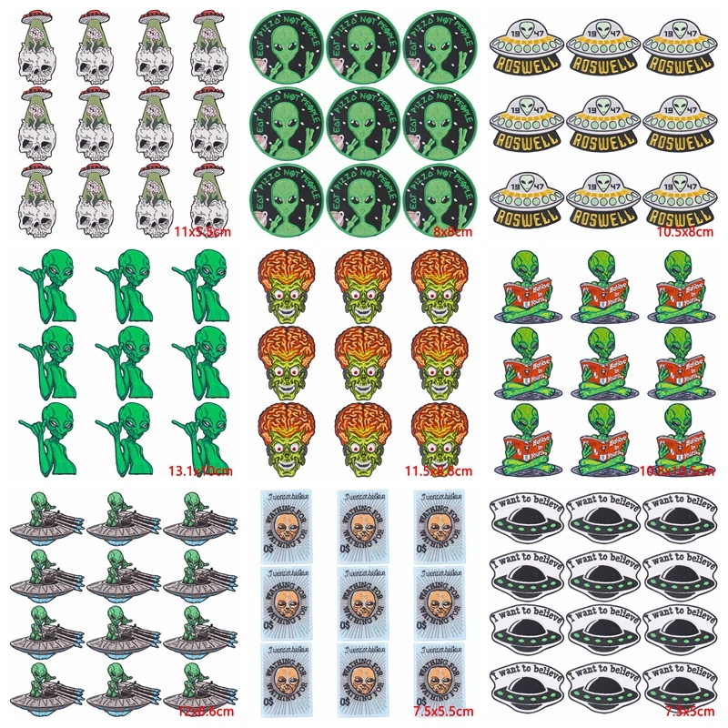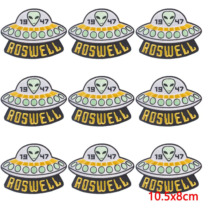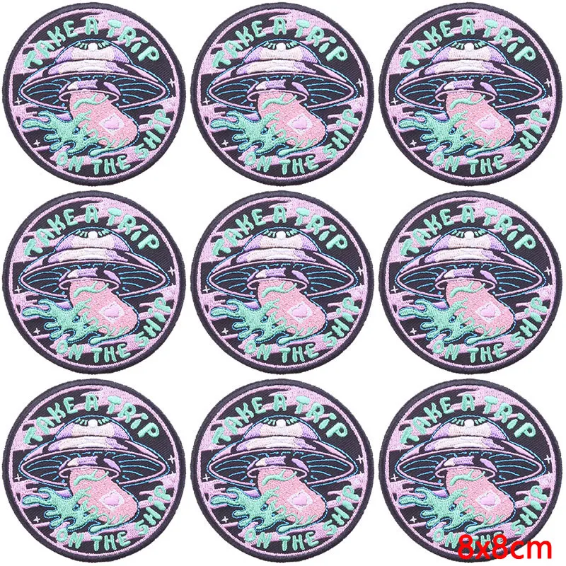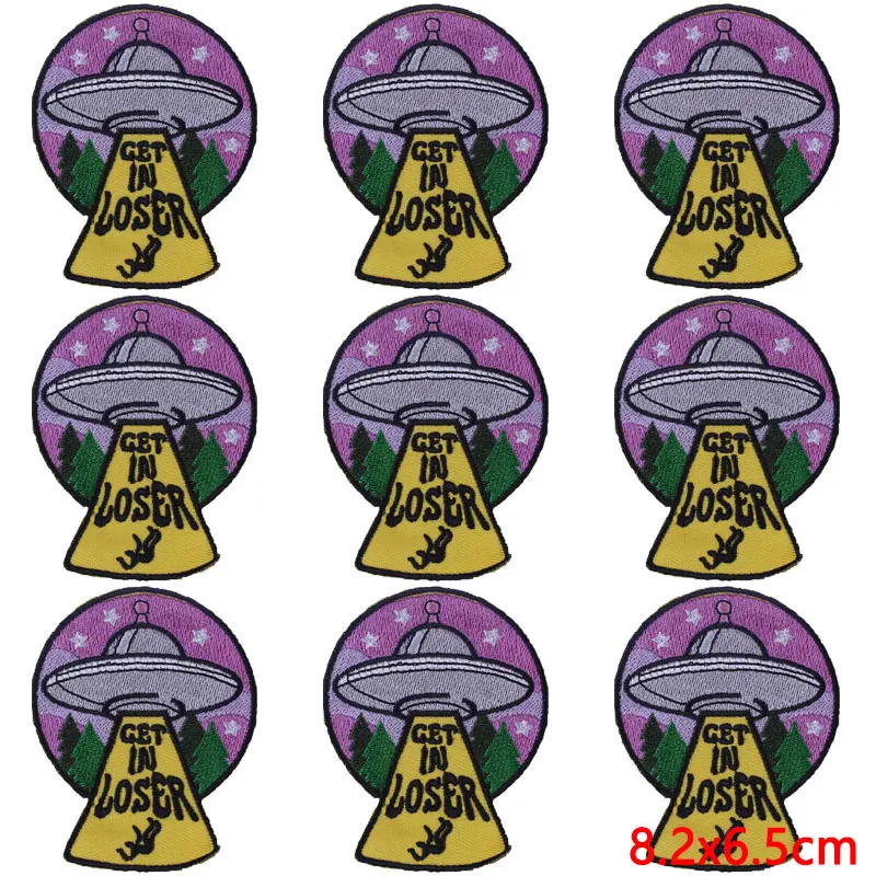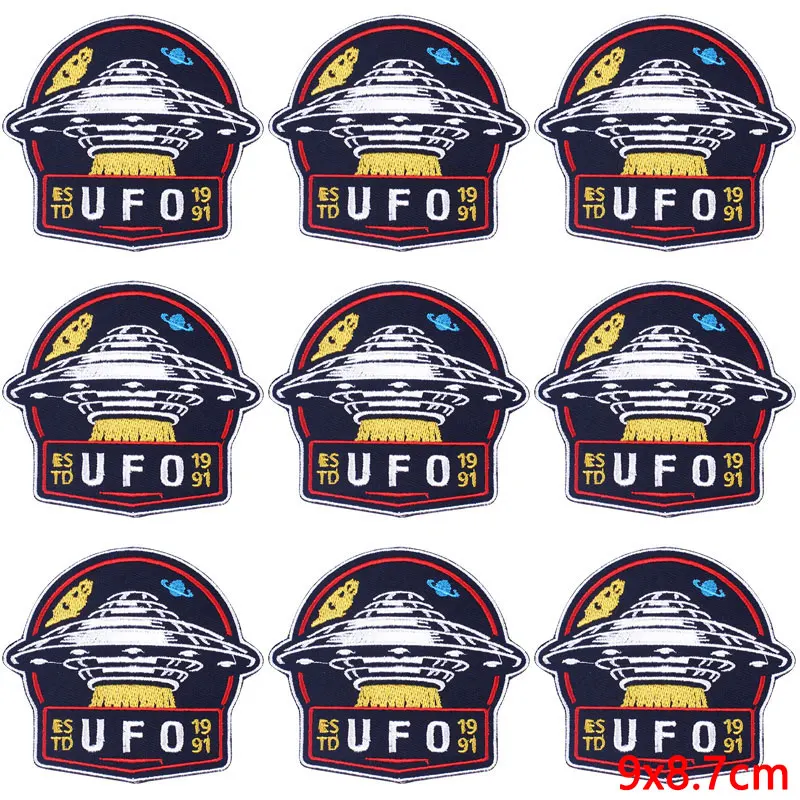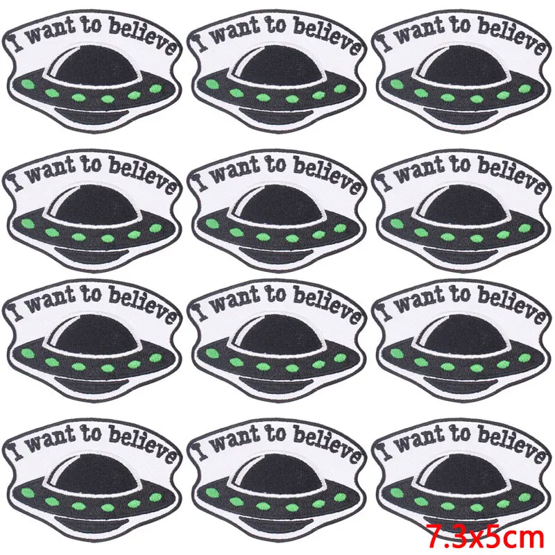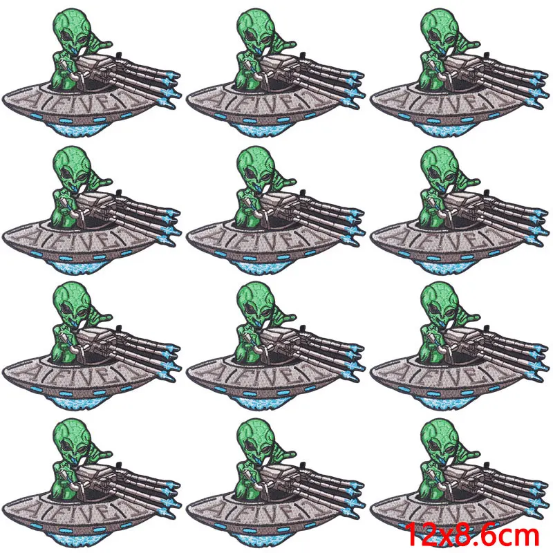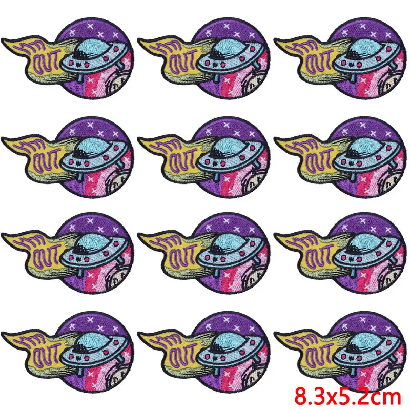 10 unids/lote Alien Ufo parche bordado hierro en parches para ropa parches termoadhesivos en ropa nave espacial parche gancho bucle
