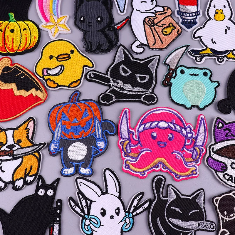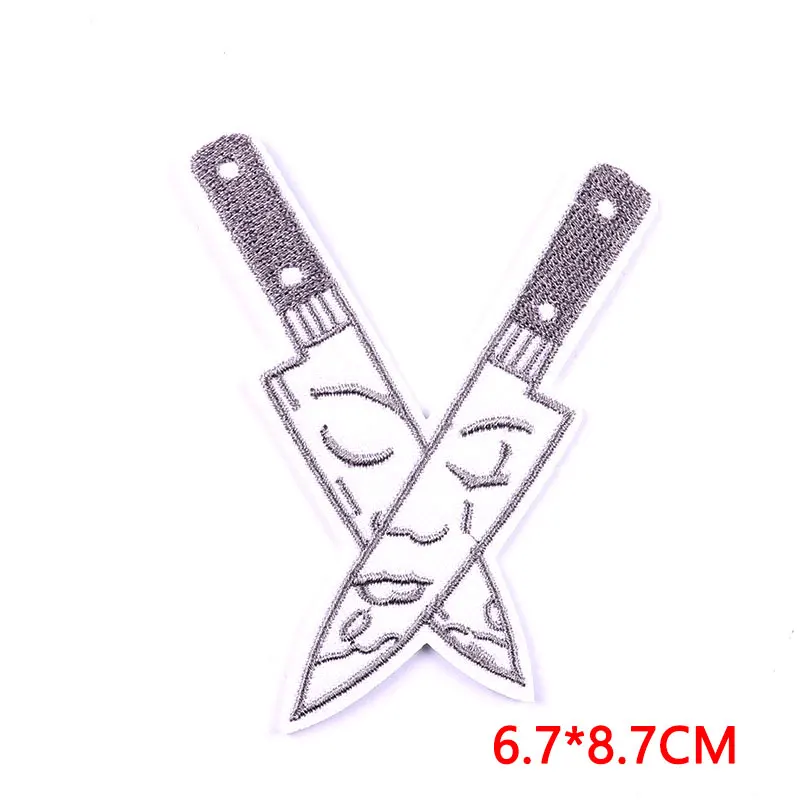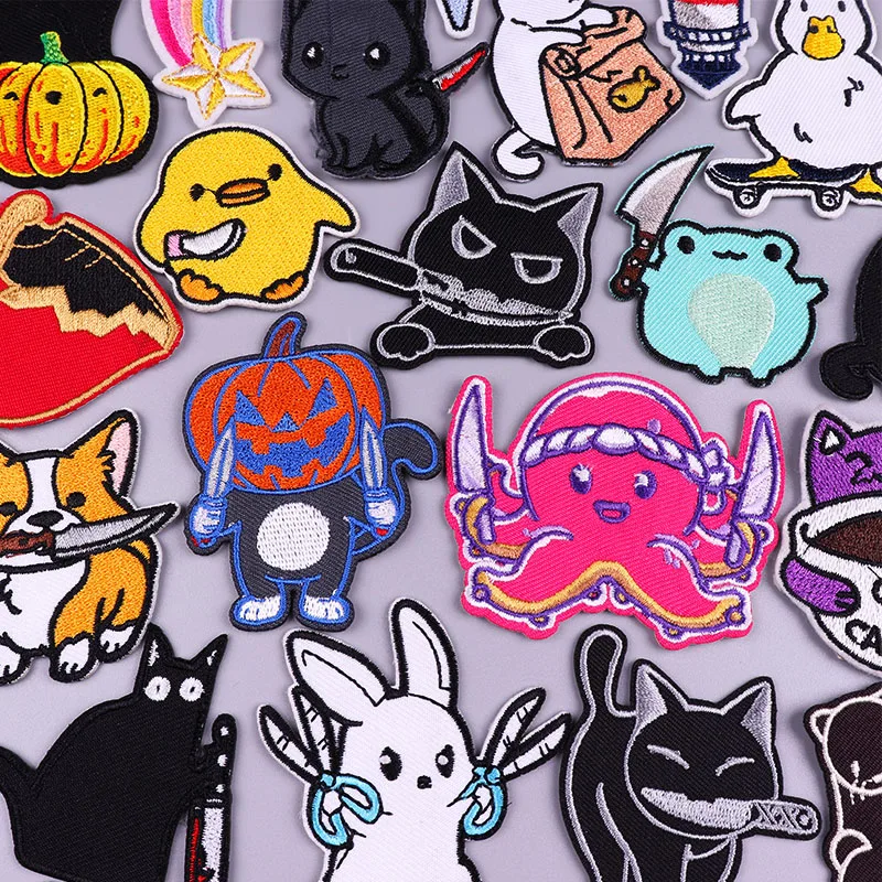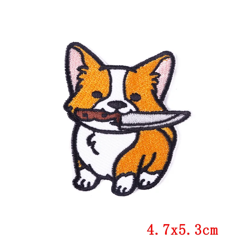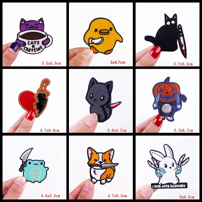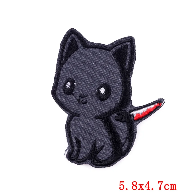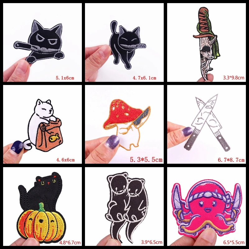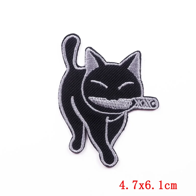 Parche bordado de Animal de dibujos animados con cuchillo, parches para planchar en la ropa, pegatinas de rayas Hippie, gato, perro, lazo de gancho