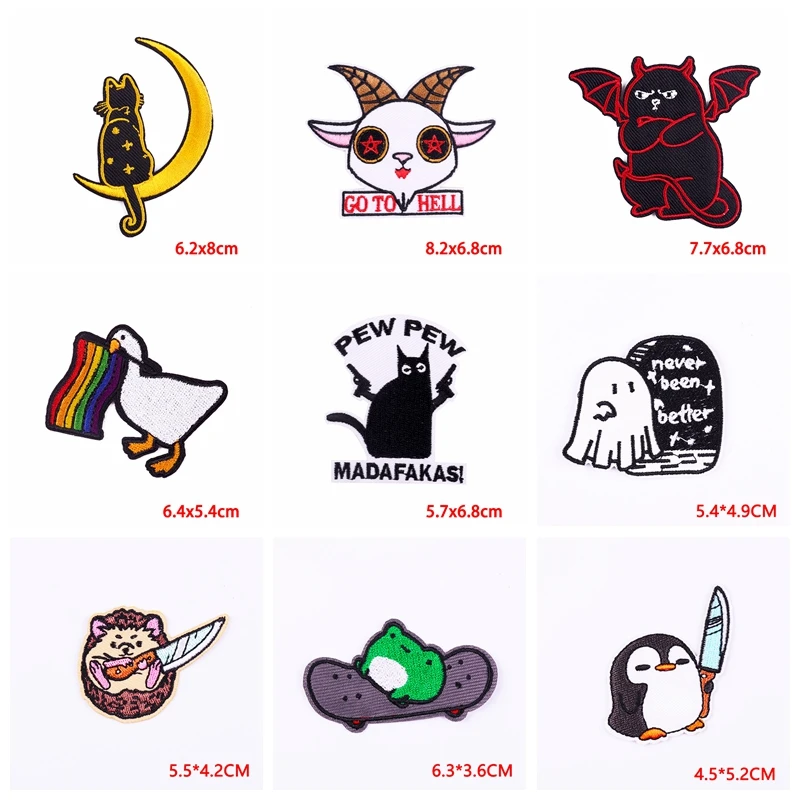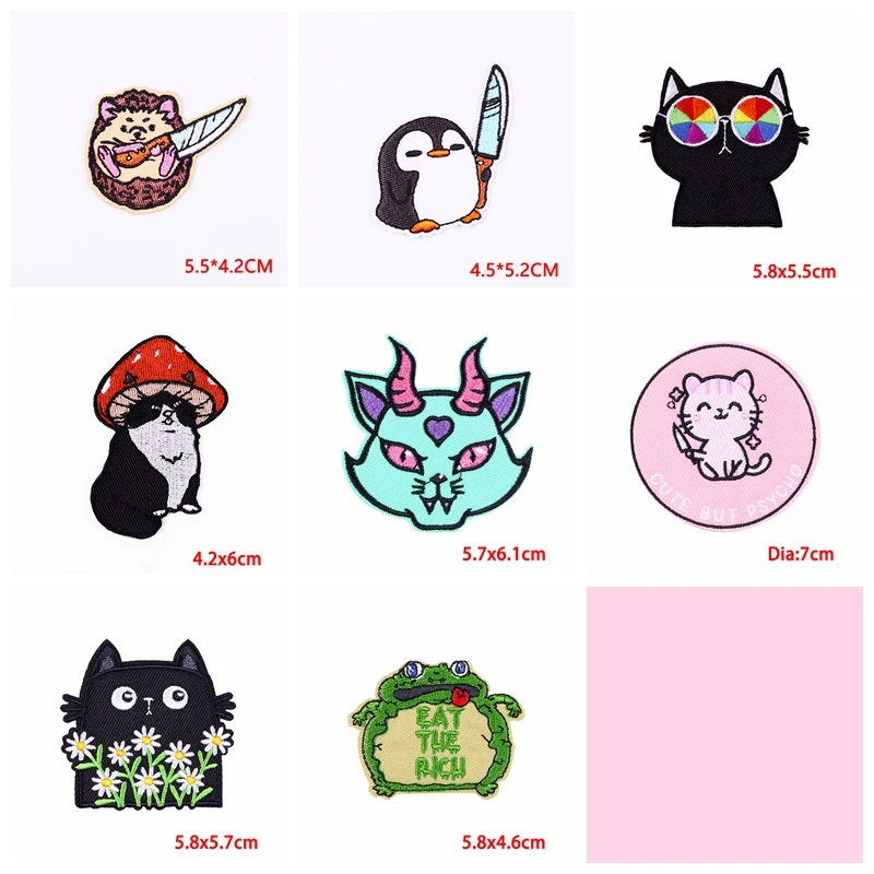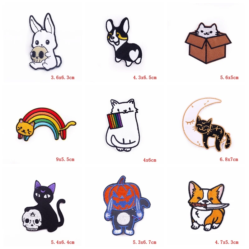 10 unids/lote, venta al por mayor, chaquetas de parche bordadas de animales de dibujos animados, costura DIY, gato, rana, conejo, Corgi, parche de hierro en parches para ropa