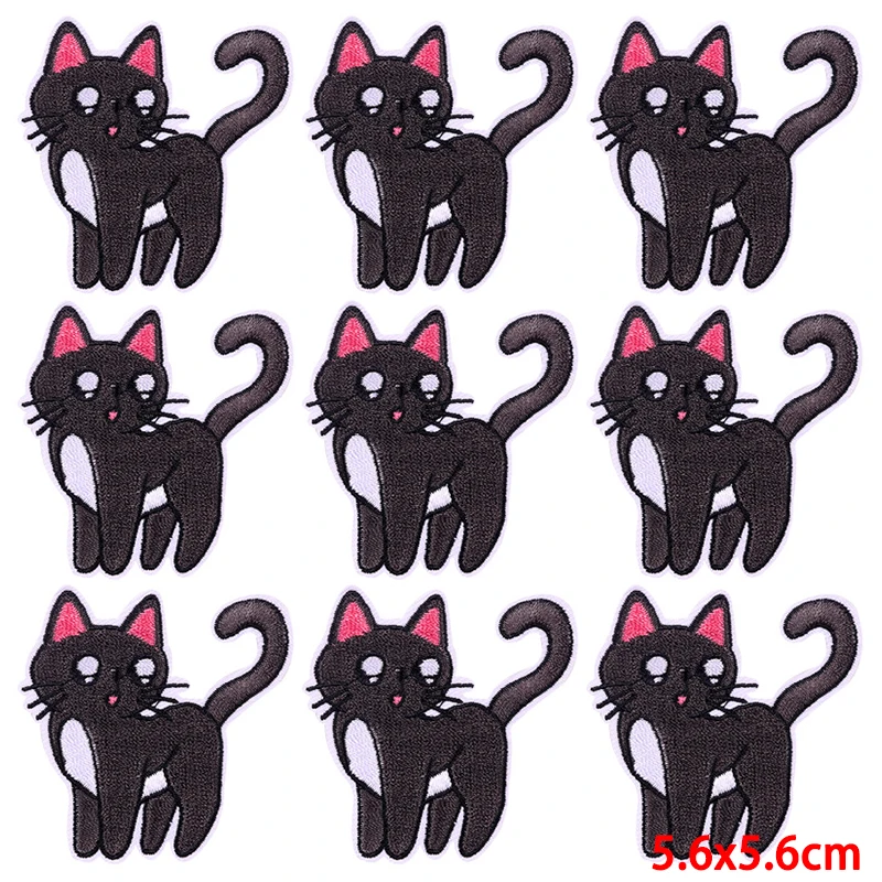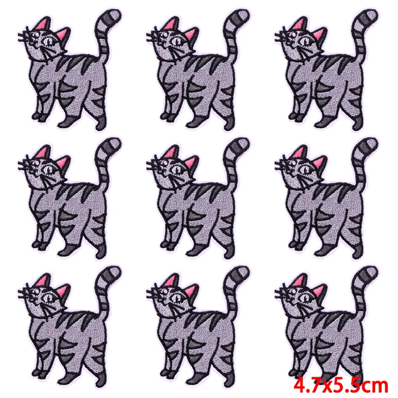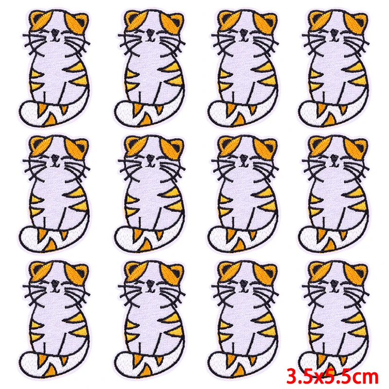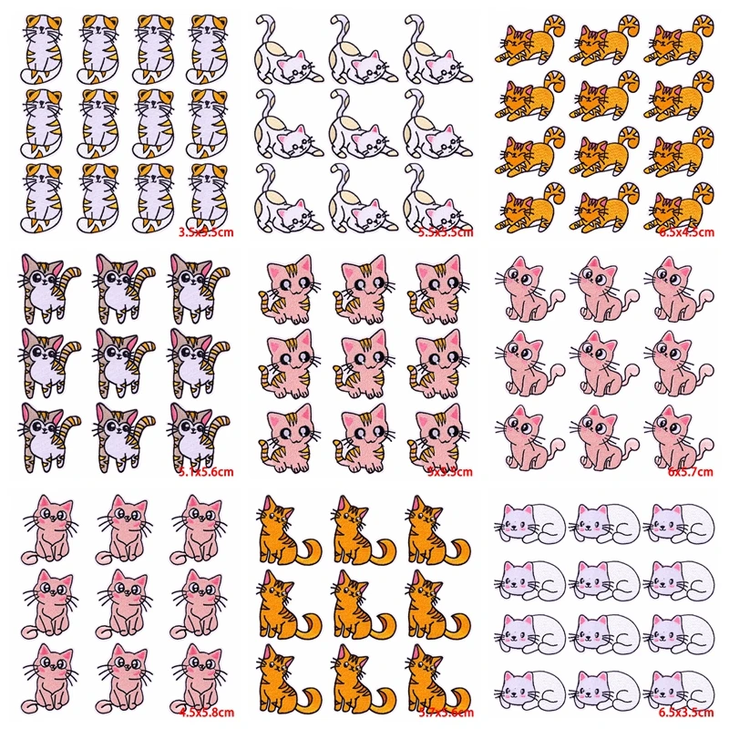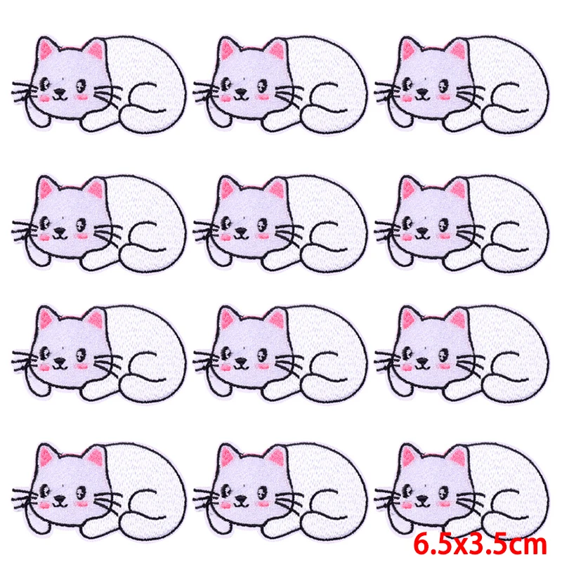 10 unids/lote de parches bordados de animales de dibujos animados, parches termoadhesivos para ropa, parche Fusible de gato bonito