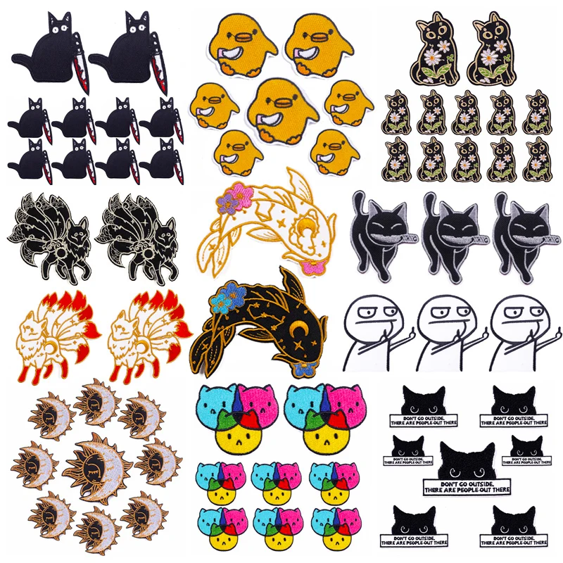 Parche bordado de animales de dibujos animados, parches termoadhesivos para planchar en la ropa, zorro, ballena y gato, 10 unidades por lote