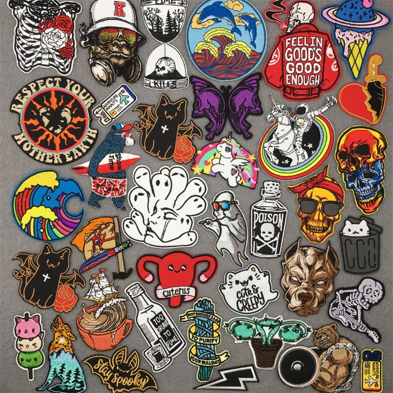 Parche bordado, parches de ropa de Anime, mochila textil, ganchos de costura para ropa, DIY, Calavera Punk, dibujos animados, parches para planchar