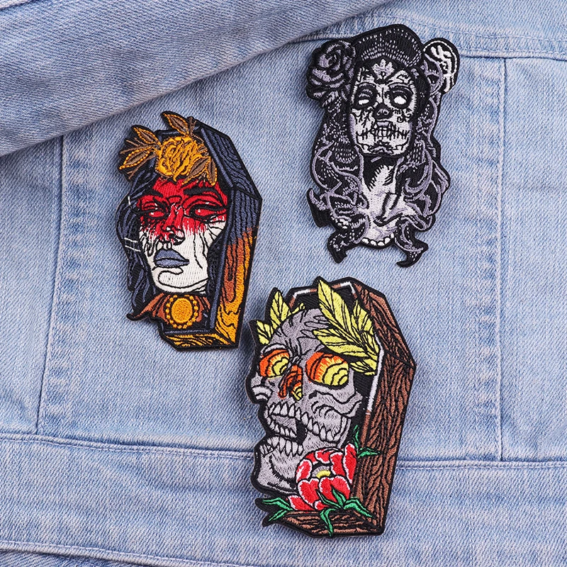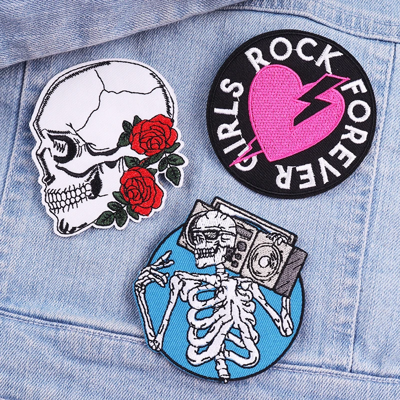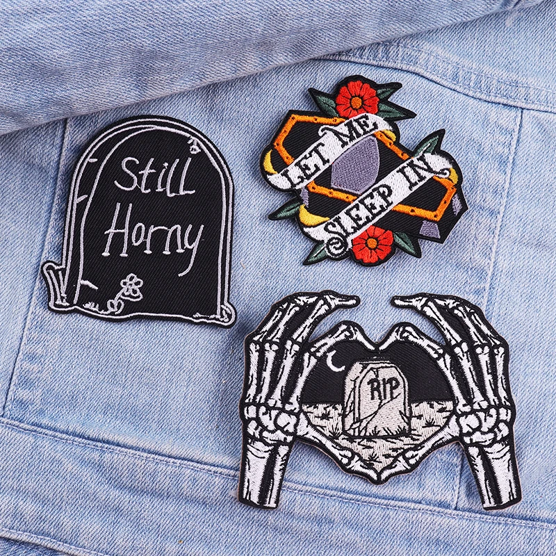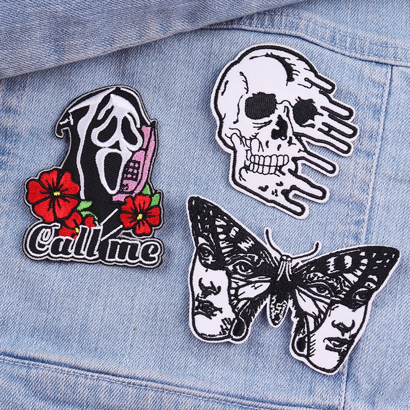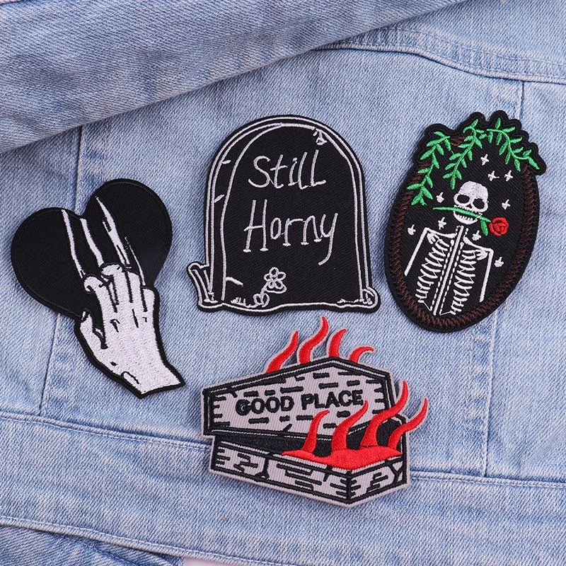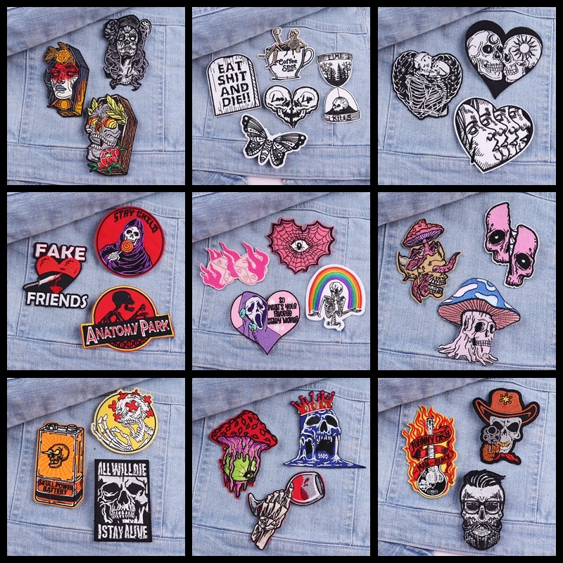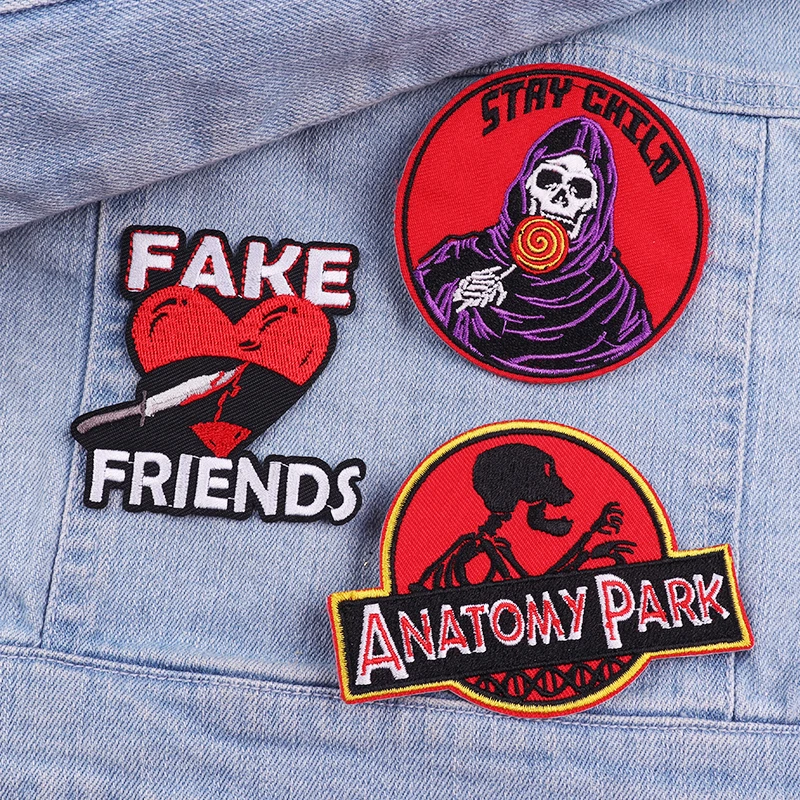 Parche bordado Anotamy Park de 3, parches de hierro de esqueleto de terror DIY para ropa, parches termoadhesivos, pegatinas de planchado