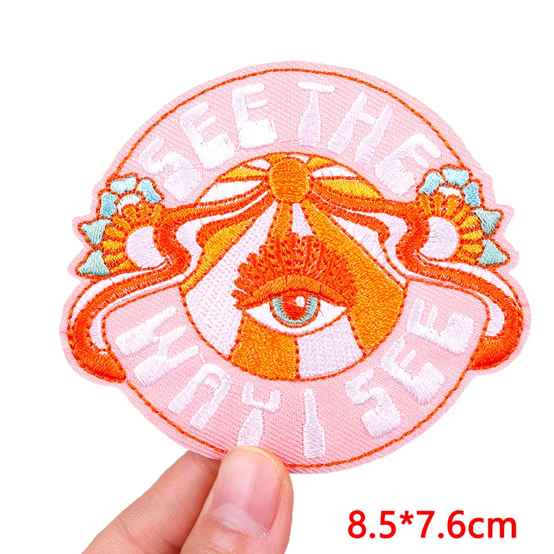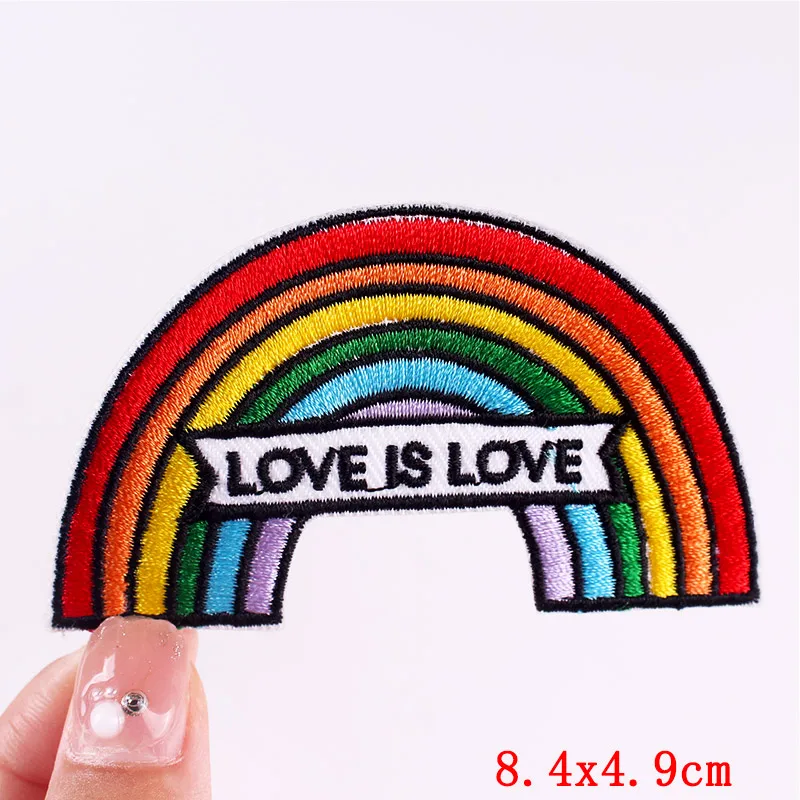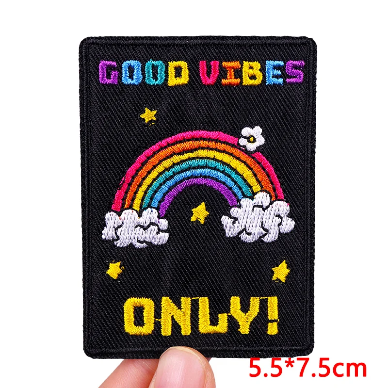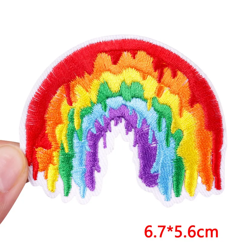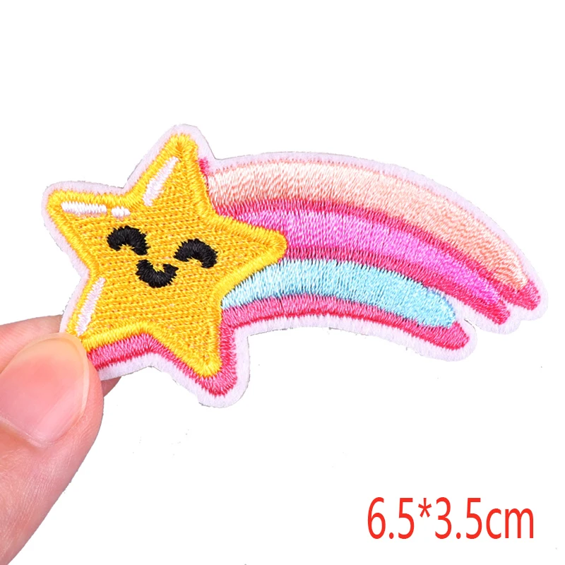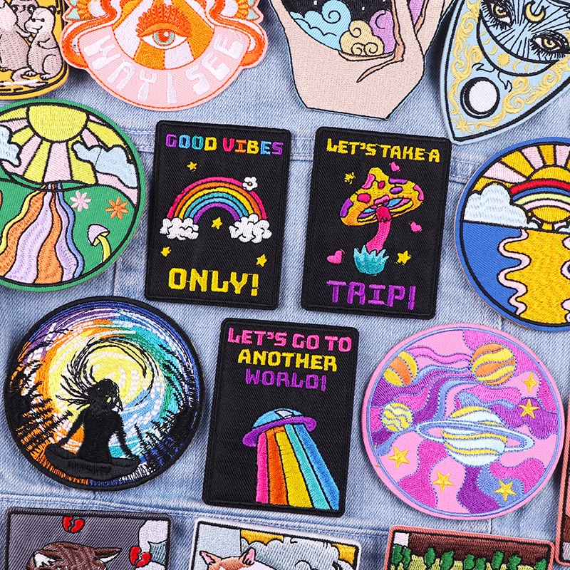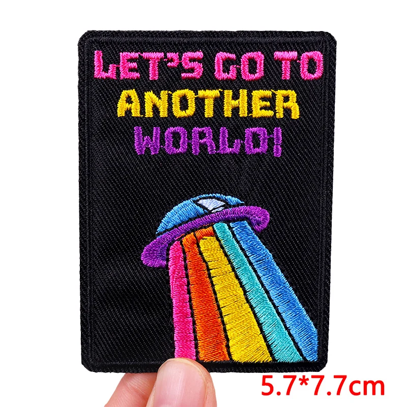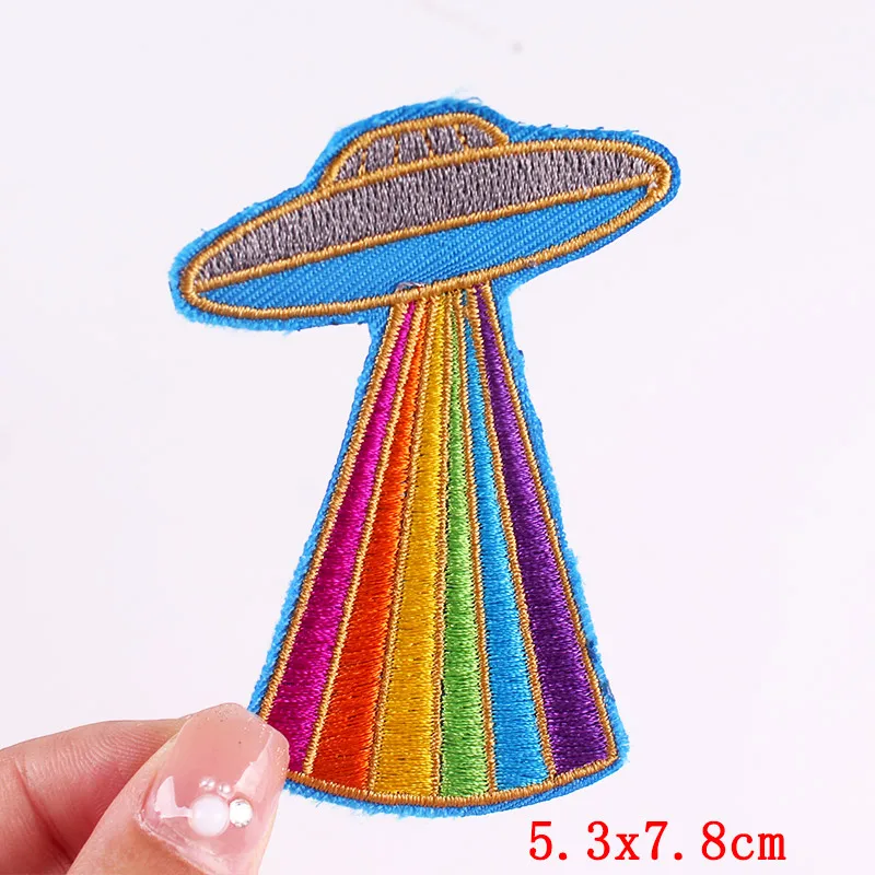 Parche bordado de arcoíris y letras, planchado DIY, planchado de ropa, planchado de dibujos animados, Planeta, OVNI