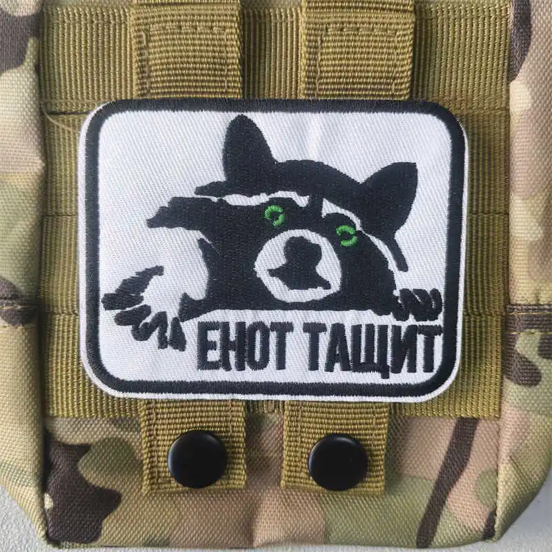 Parche bordado de arrastre de mapache, parches militares de gancho y bucle para ropa, sombrero, insignia de moral táctica, pegatinas decorativas para mochila