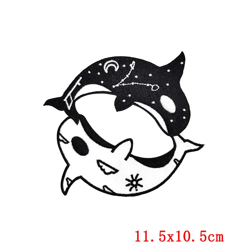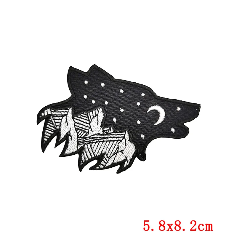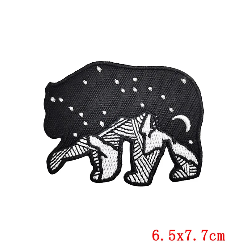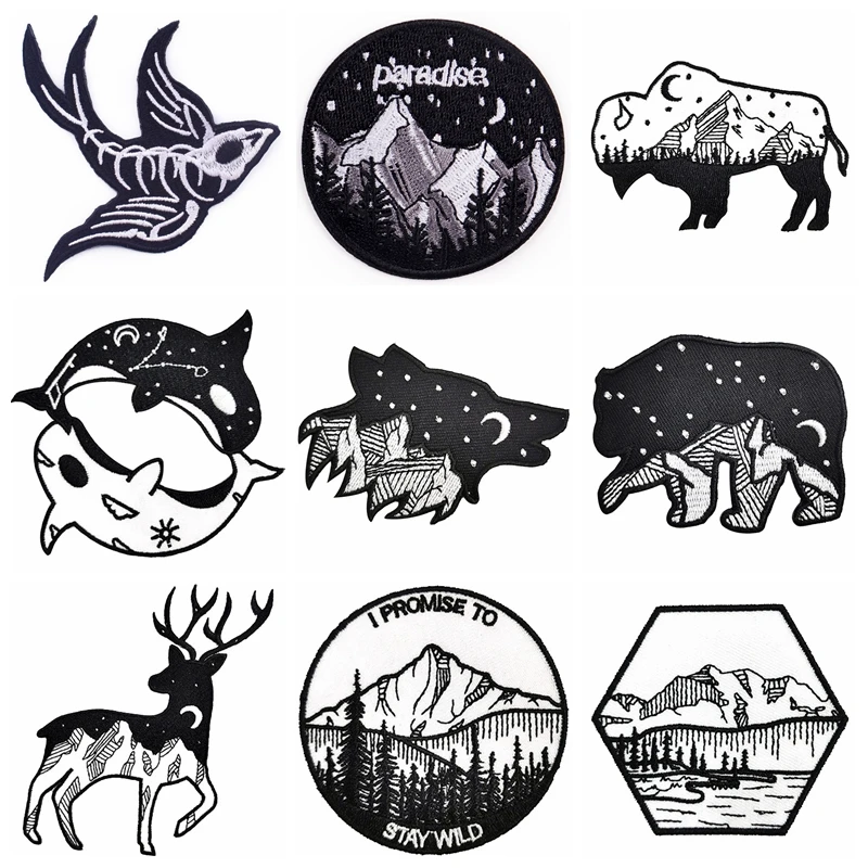 Parche bordado blanco negro parches de animales para exteriores en ropa DIY Noche de montaña parches de hierro para ropa insignias a rayas