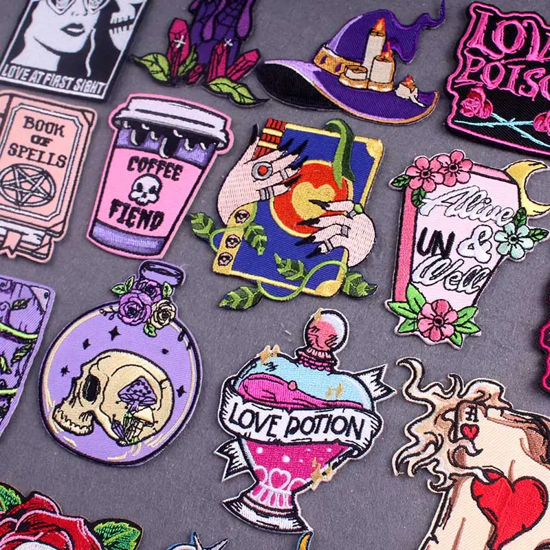 Parche bordado de bruja, parches termoadhesivos para ropa, parche Punk a rayas, parches para planchar en ropa, insignias góticas en la mochila