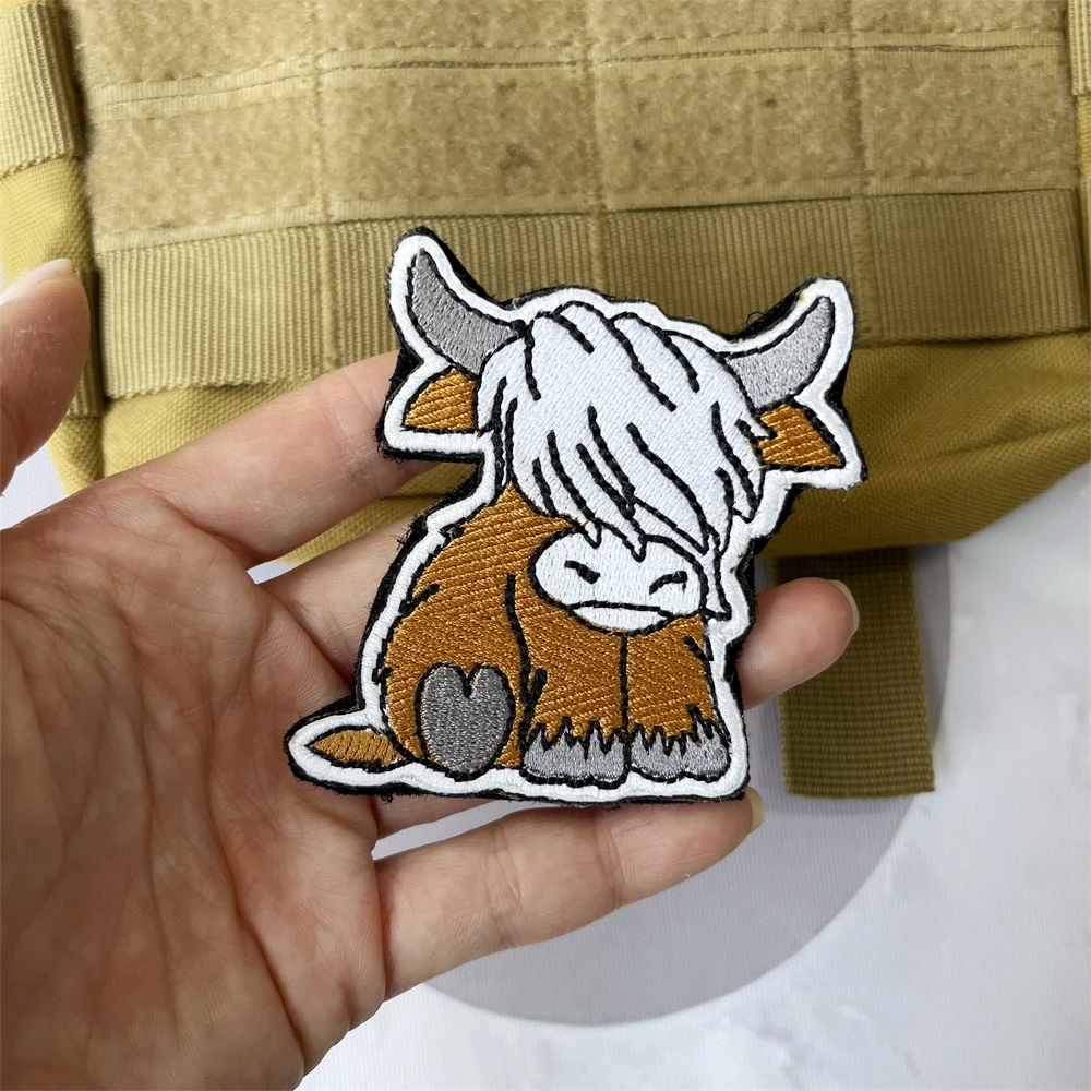 Parches bordados de buey de alta montaña, insignia de moral táctica, decoración de mochila, pegatina de gancho y bucle
