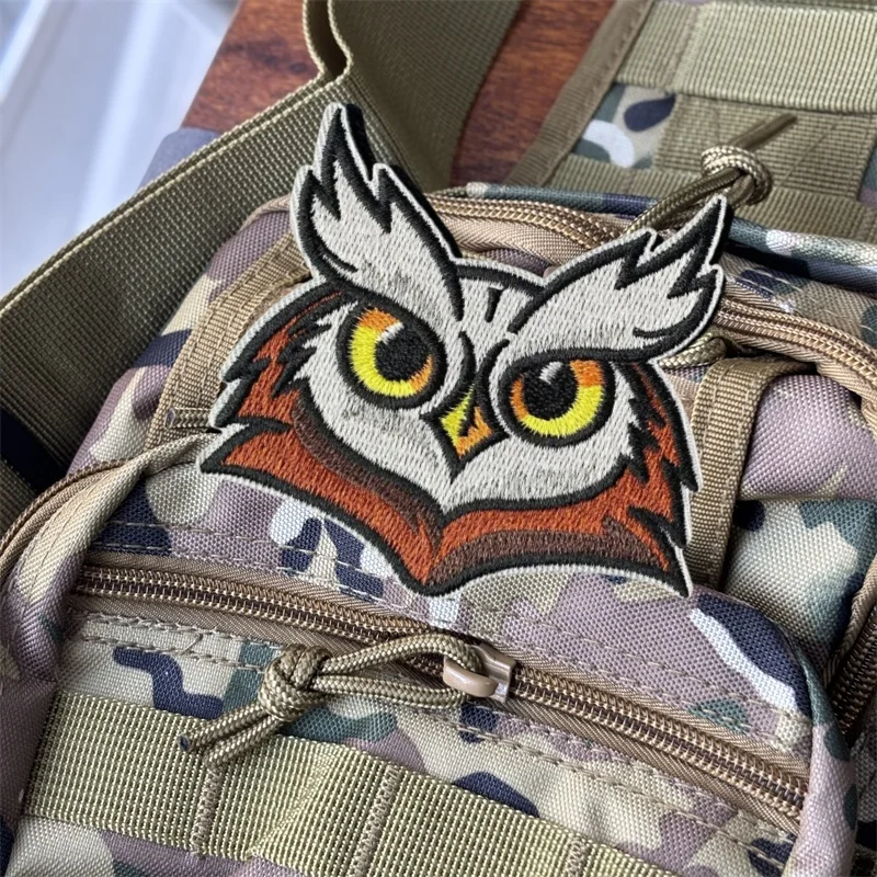Parche bordado de búho para ropa, insignia de moral táctica, parche militar con gancho, pegatinas para mochila, brazalete