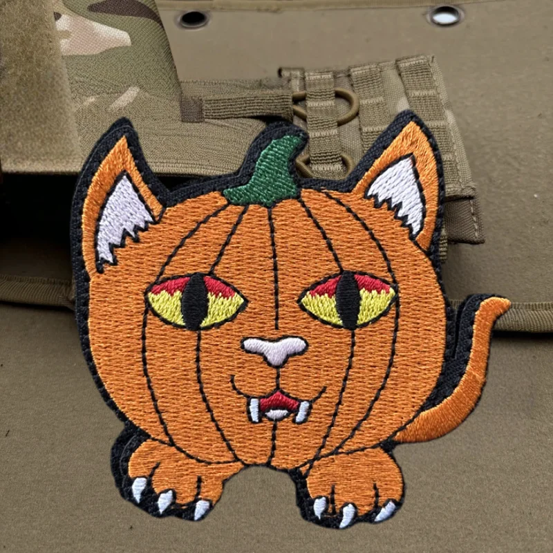 Parche bordado de calabaza de Halloween, chaleco táctico con gancho y bucle, insignia de moral, mochila, pegatina decorativa, parches para brazalete para ropa