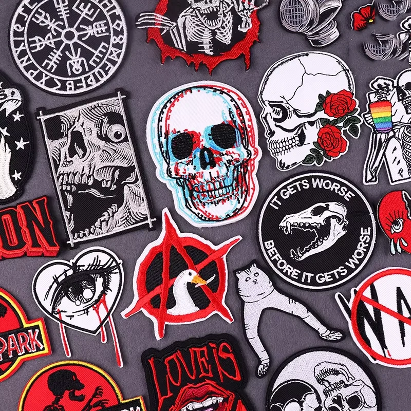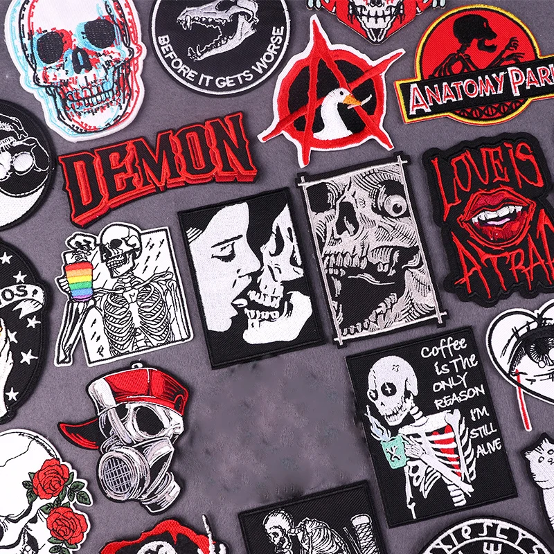 Parche bordado de calavera aterradora, parche de esqueleto, parches para planchar para ropa, parches termoadhesivos para ropa, insignia de estilo Punk Rock