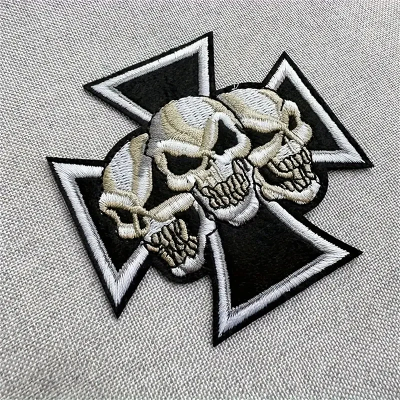 Parche bordado de calavera Diy, aplique para planchar y coser para Jeans, camisas y accesorios
