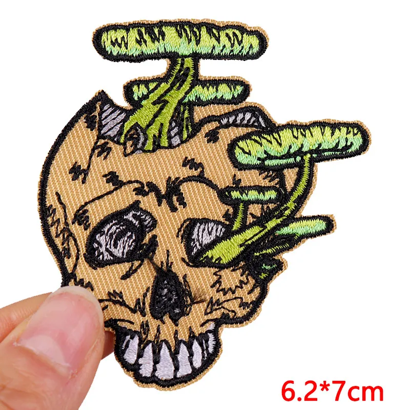 Parche bordado de calavera fresca, parches termoadhesivos para ropa, chaquetas, insignias de costura, parche Punk de terror