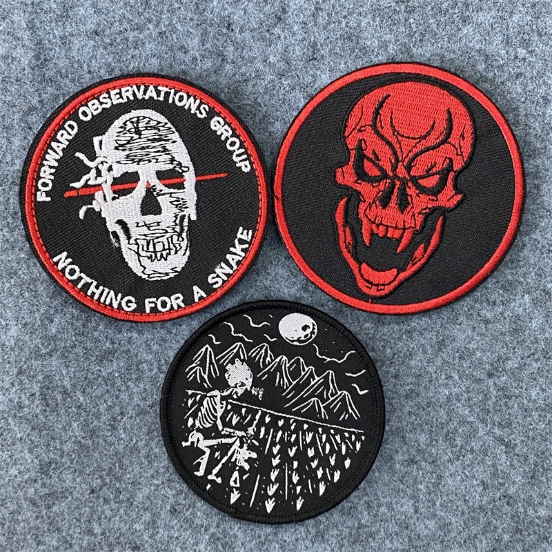 Parche bordado de Calavera, insignia de moral táctica militar, pegatina impresa, brazalete con gancho y lazo, ropa, parches para mochila
